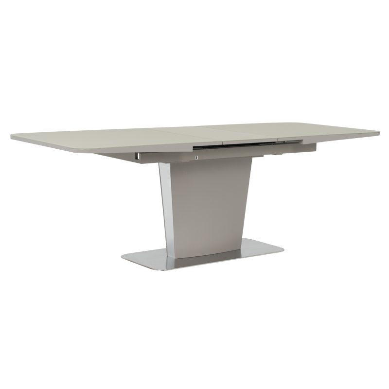 Разтегателната трапезна маса DUBROVNIK впечатлява със своя съвременен дизайн и функционалност. Плотът е изработен от висококачествен МДФ в комбинация със закалено стъкло, придавайки изтънчен и изчистен вид. Здравата основа от неръждаема стомана осигурява стабилност и дълготрайност, допълвайки модерния стил на модела. С помощта на удобен слайд механизъм, масата се разтяга лесно, увеличавайки се от 180 см на 220 см, което я прави идеална както за ежедневна употреба, така и за специални събития. DUBROVNIK е перфектният избор за модерния дом, където стилът и удобството вървят ръка за ръка. Пълна информация за размерите и характеристиките на модела ще намерите в таблицата в таб/поле "Техническа информация".
