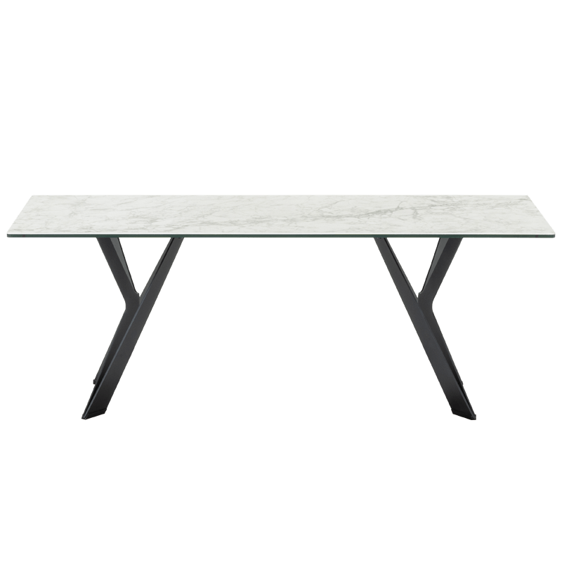 Холната маса GOLINA съчетава функционалност със съвременен дизайн. Плотът с дебелина 12 мм комбинира 8 мм закалено стъкло с 4 мм керамичен завършек, създавайки елегантна и издръжлива повърхност. Основата, изработена от праховобоядисан метал, впечатлява с геометрична прецизност и динамични линии в изискания матов черен цвят, добавяйки визуален акцент към всяко интериорно пространство. С размери 120 см дължина, 60 см ширина и 45 см височина, GOLINA е идеалният акцент, който внася стил и хармония във вашия дом.