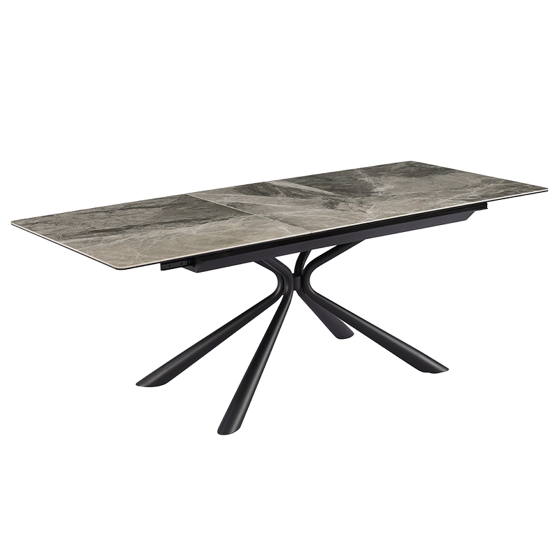 Трапезната маса KETY е изтънчено съчетание на модерна естетика и функционалност. Плотът е изработен от закалено стъкло в комбинация с керамика, като гланцираният завършек с фини мраморни нюанси придава елегантност и лукс в интериора. Общата дебелина от 12 мм осигурява здравина и стабилност, докато основата от праховобоядисан метал в изискан черен цвят се отличава с минималистичен профил и изчистени линии. Благодарение на иновативния слайд механизъм, масата се разтяга от 160 см до 200 см с лекота, осигурявайки достатъчно пространство за вашите специални моменти. Пълна информация за размерите и характеристиките на модела ще намерите в таблицата в таб/поле "Техническа информация".