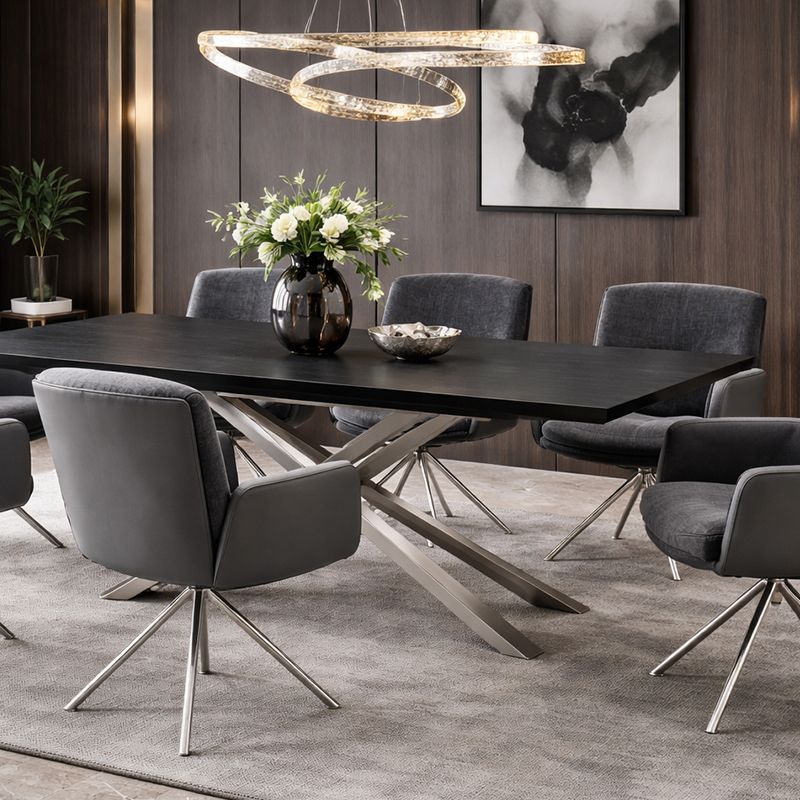 Трапезната маса KIKOL е впечатляващ символ на модерния стил и прецизност. Плотът от 12 мм, съчетаващ закалено стъкло и висококачествена испанска керамика, привлича с топлия си кафяв цвят и естествените текстури, които носят усещане за изисканост и уют. Основата, изработена от неръждаема стомана с инокс финиш, впечатлява с геометрична елегантност и създава усещане за лекота, като същевременно гарантира изключителна стабилност. Благодарение на иновативния слайд механизъм, KIKOL се разтяга плавно от 180 см до 230 см, предоставяйки пространство за незабравими семейни вечери и стилни събирания. Хармоничните цветови контрасти и елегантният дизайн превръщат KIKOL в забележителен акцент за всеки модерен дом.