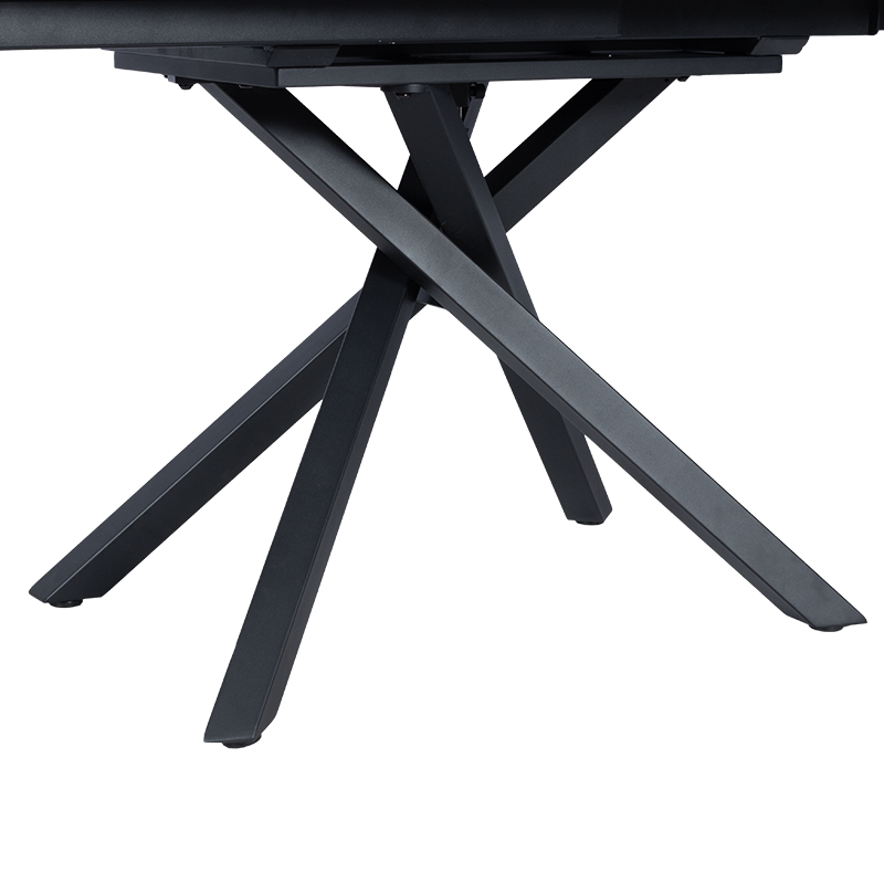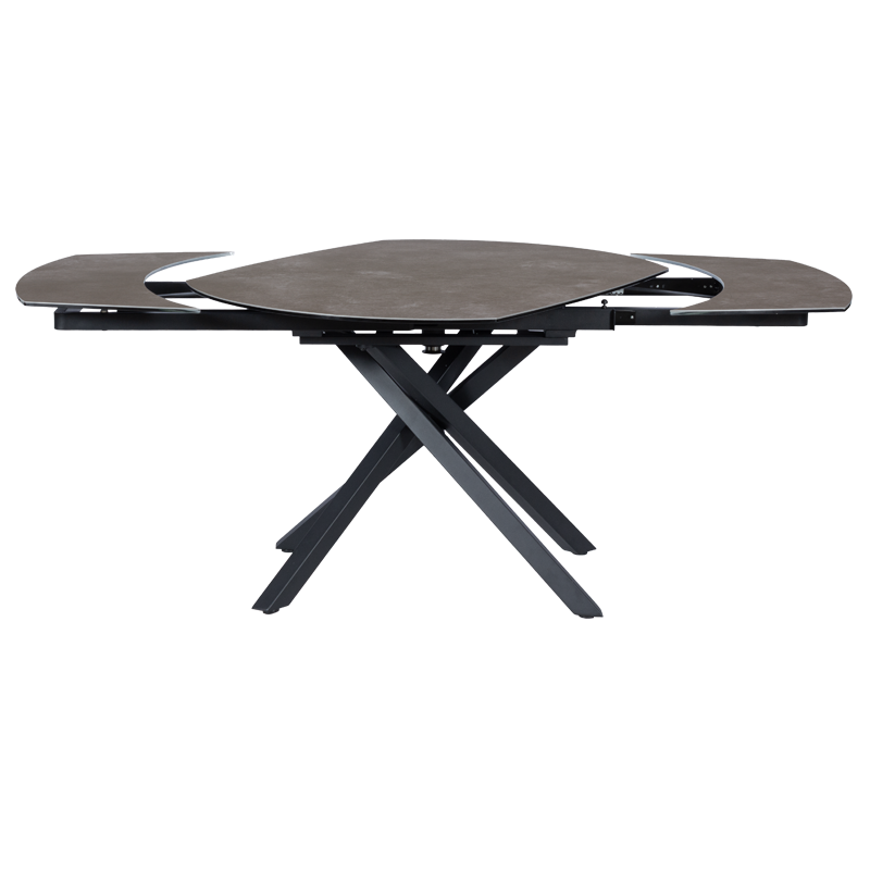 Разтегателната трапезна маса GOLOLIN X се отличава с изискания си плот, изработен от комбинация от закалено стъкло и керамика, който впечатлява с фини текстури и стилен бежов оттенък. Масата разполага с иновативен механизъм, при който разширението се осъществява чрез завъртане на основния плот, разкривайки двата допълнителни плота и трансформирайки масата от 120 см на 180 см. Тази интелигентна функция осигурява лесно и плавно разтягане, добавяйки допълнително пространство за вашите гости. Основата на GOLOLIN X е изработена от праховобоядисан метал в черен цвят, който създава контраст и допринася за модерния вид на масата. Динамичният дизайн на краката с кръстосана форма осигурява стабилност и придава визуален акцент, който подчертава съвременната естетика на модела. GOLOLIN X съчетава елегантност и функционалност, което я прави идеалният избор за всеки модерен дом. Пълна информация за размерите и характеристиките на модела ще намерите в таблицата в таб/поле "Техническа информация".