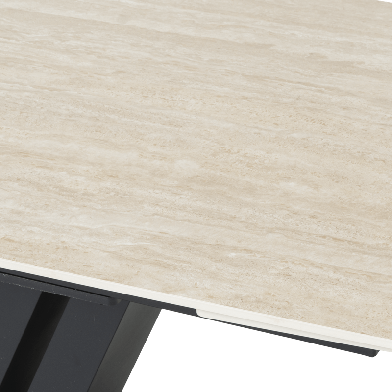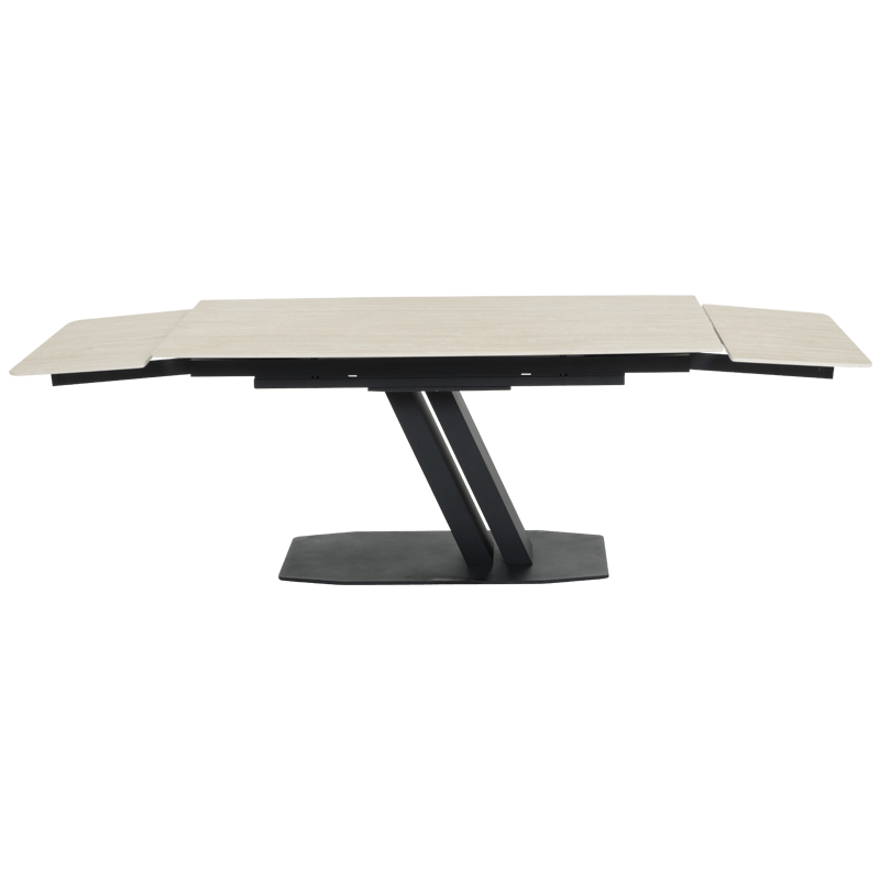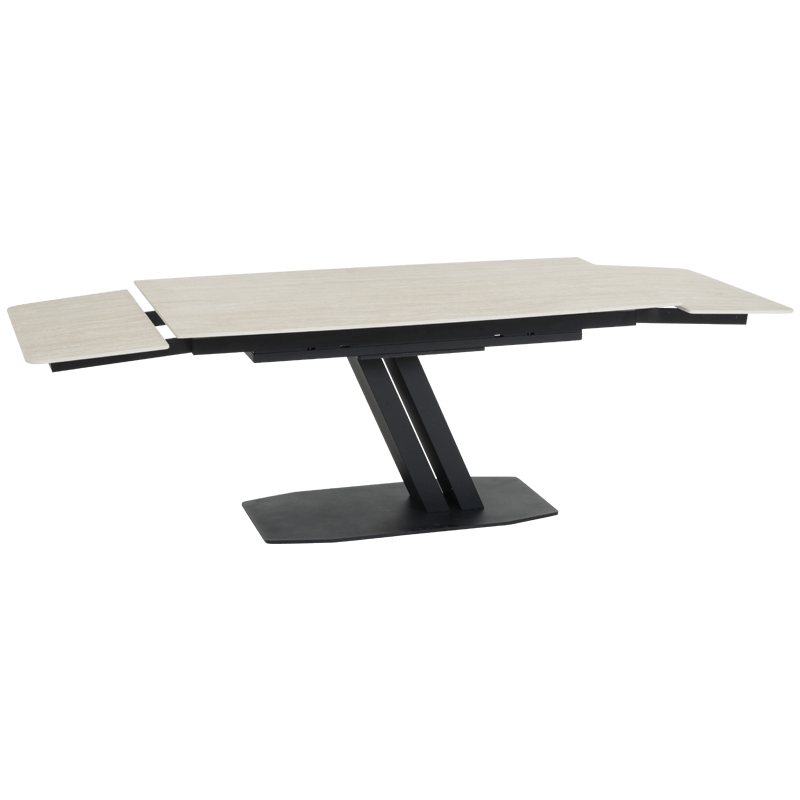 Разтегателна трапезна маса ARAGUA впечатлява със своя изчистен дизайн и топъл цвят клен, който внася уют във всяка трапезария. Плотът е изработен от устойчива керамика, което гарантира лесна поддръжка и дълготрайност, а основата от праховобоядисан метал осигурява стабилност и модерна визия. С компактна дължина от 160 см, която лесно се увеличава до 240 см чрез разтегателен механизъм, ARAGUA е идеалното решение за всякакви семейни събирания и празници.