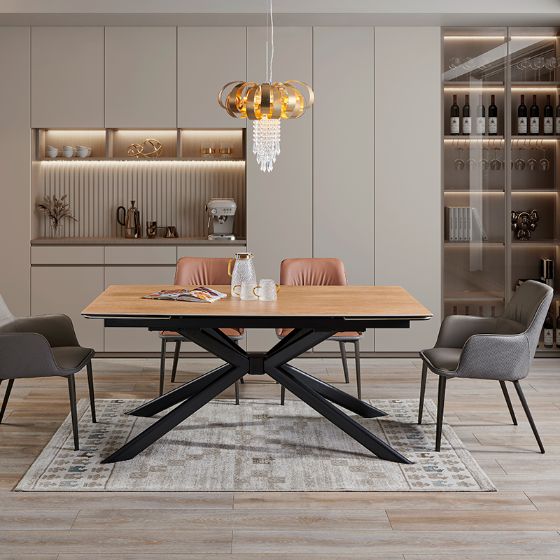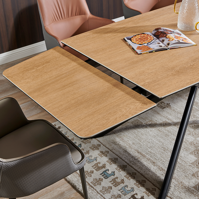 Разтегателна трапезна маса ANACO впечатлява с естествената си естетика и изчистен дизайн, който допълва всяка съвременна трапезария. Плотът комбинира закалено стъкло и керамика с дървесен цвят, създавайки хармония между издръжливост и стил. Здравата основа от праховобоядисан метал осигурява стабилност и надеждност. Със стандартна дължина от 160 см, която може да се разшири до впечатляващите 240 см благодарение на практичен разтегателен механизъм, масата предоставя достатъчно пространство за специални поводи и ежедневни събирания. ANACO е перфектният избор за тези, които търсят комбинация от функционалност и естествена красота. Пълна информация за размерите и характеристиките на модела ще намерите в таблицата в таб/поле "Техническа информация".