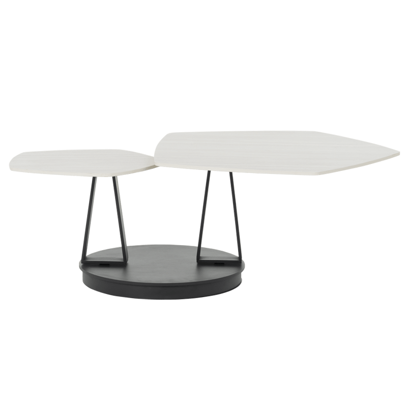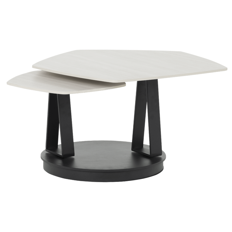 Комплект холни маси ORTIZ впечатлява с изтънчена елегантност и функционален дизайн. Плотовете, изработени от висококачествена керамика с дебелина 12 мм, са в топъл кленов цвят, който добавя естествена мекота и съвременен характер на модела. Нестандартната петоъгълна форма внася усещане за динамика и артистичен акцент, докато основата от праховобоядисан метал осигурява стабилност и визуална хармония. Благодарение на иновативния механизъм за завъртане, комплектът ORTIZ се трансформира с лекота, предлагайки гъвкавост и отличително присъствие във всеки модерен интериор. Пълна информация за размерите и характеристиките на модела ще намерите в таблицата в таб/поле "Техническа информация".
