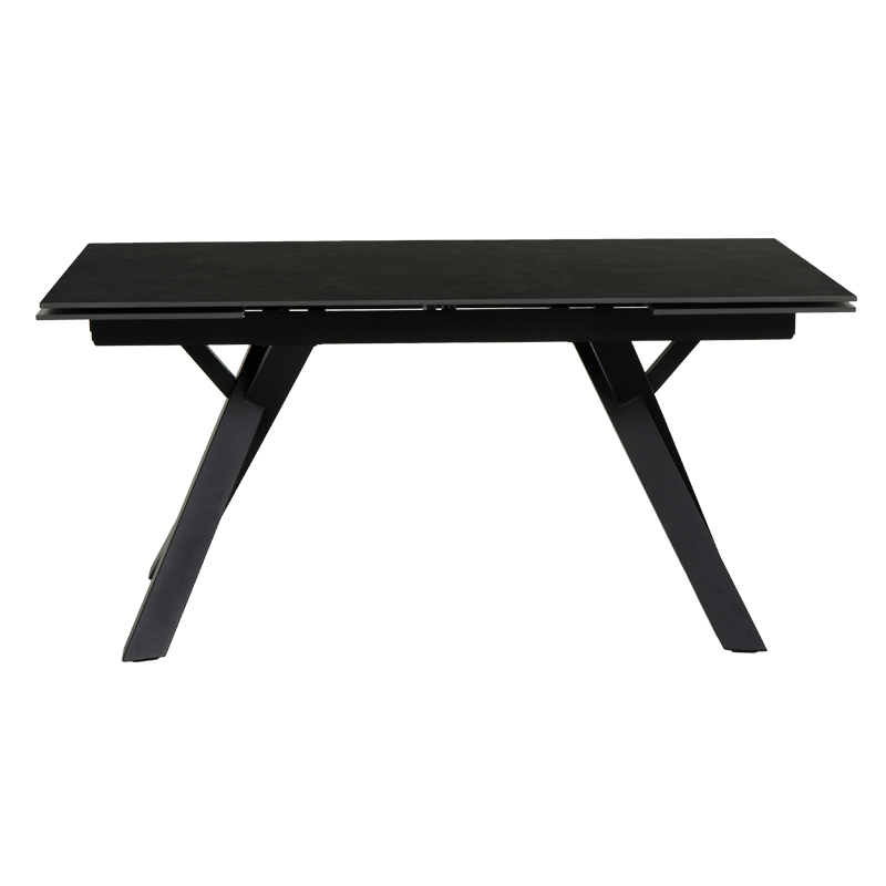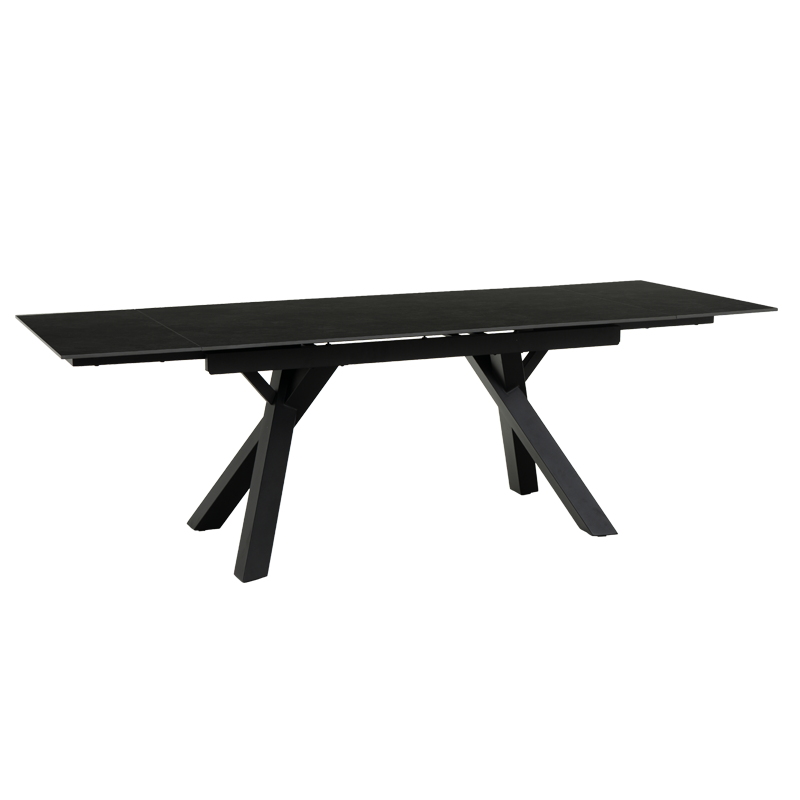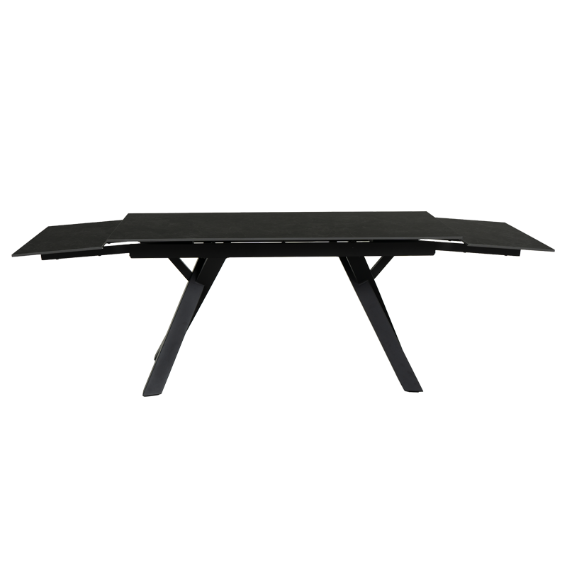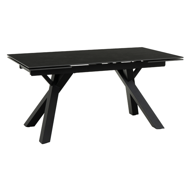 Трапезната маса OPOLE е модел с нестандартни крака, направени от праховобоядисан метал, в елегантен черен цвят. Тя е с голям керамичен плот (160 х 240 см), с шарки, имитиращи мрамор и функция за разтягане.