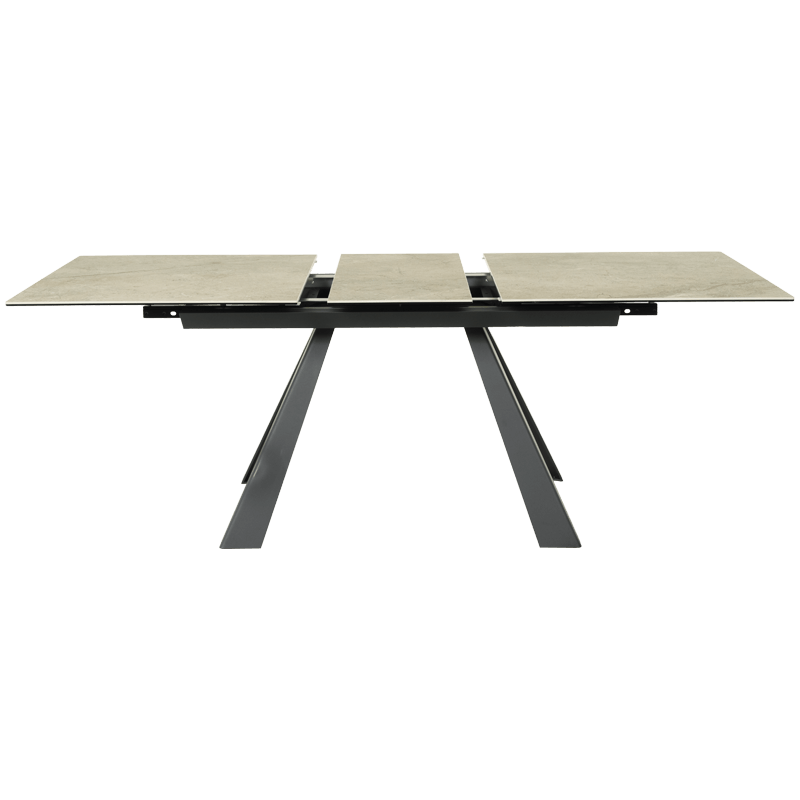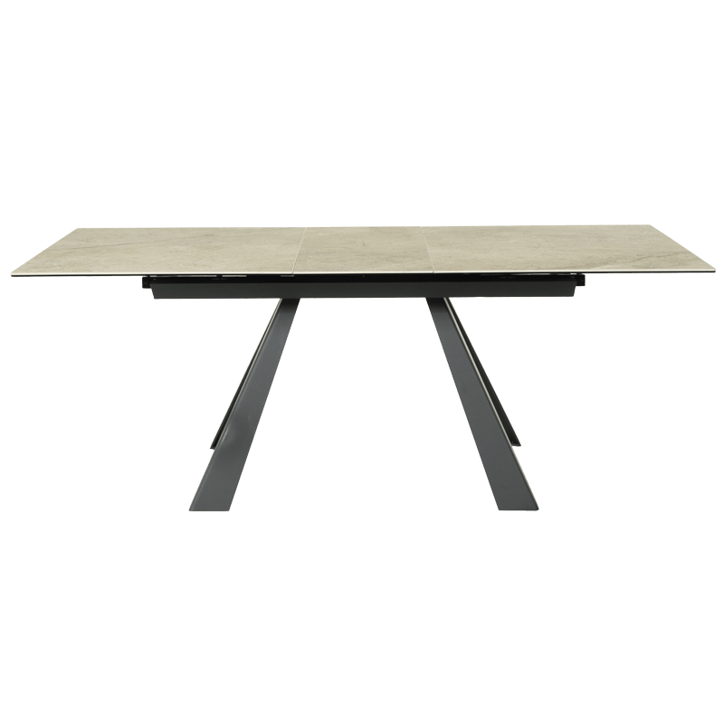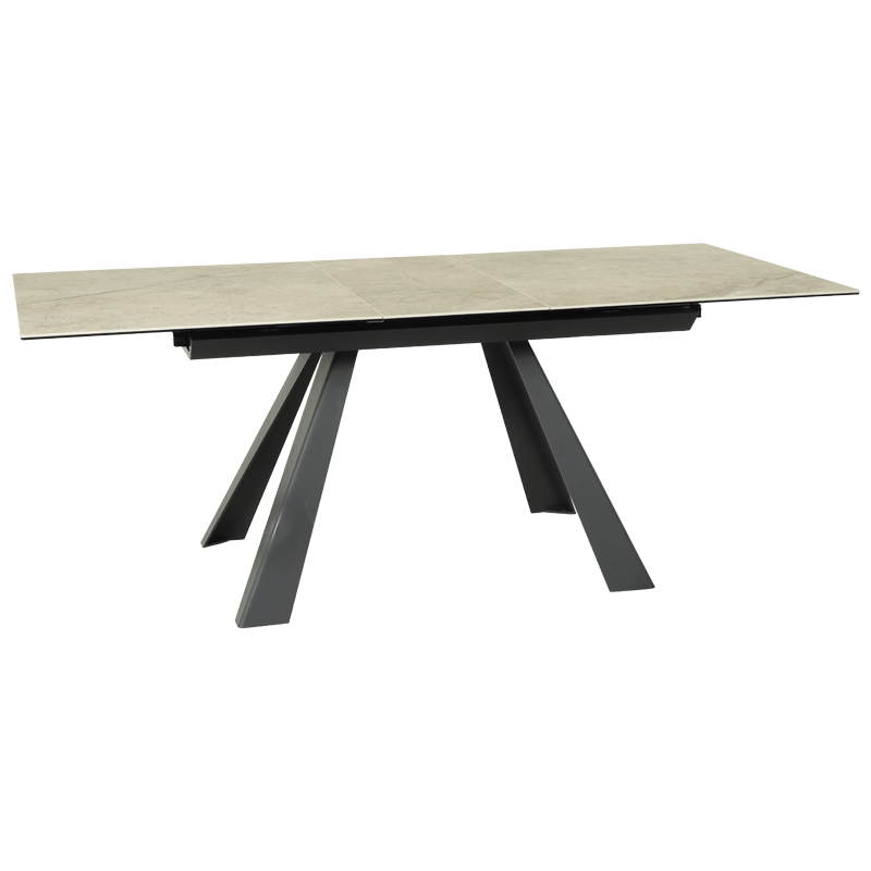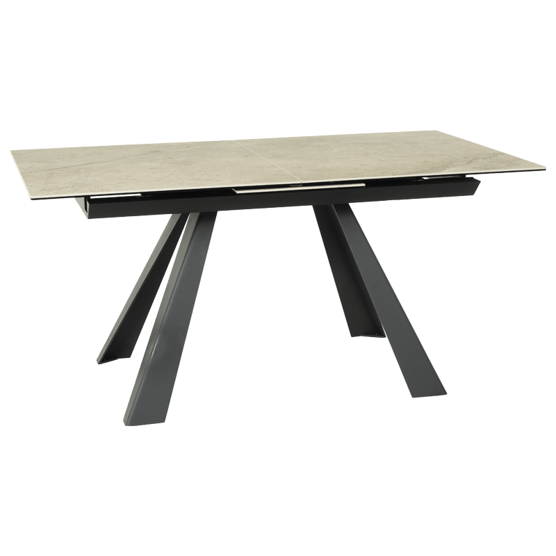 Разтегателна трапезна маса LASK привлича с уникалния си дизайн и висококачествена изработка. Плотът, изработен от керамика и закалено стъкло, съчетава стил и устойчивост, предоставяйки елегантно решение за всяка трапезария. С дължина от 160 см, която може да бъде увеличена до 200 см благодарение на иновативния механизъм за разтягане, масата лесно се адаптира към вашите нужди и осигурява повече пространство за вашите гости. Здравата метална основа с праховобоядисан завършек допълва модерната визия и гарантира стабилност. С ширина 90 см, разтегателната трапезна маса LASK е идеалното съчетание от функционалност и изтънченост, създавайки уют и стил в дома ви. Пълна информация за размерите и характеристиките на модела ще намерите в таблицата в таб/поле "Техническа информация".