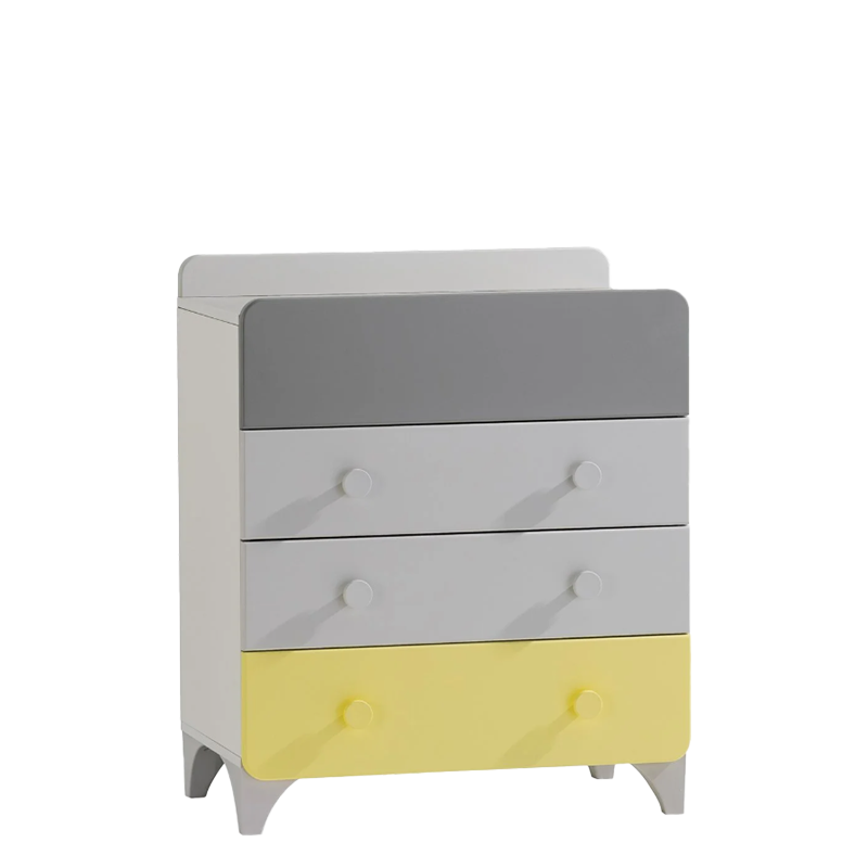 Детски скрин за дрехи MINIA разполага с четири просторни чекмеджета, всяко снабдено с механизъм за плавно затваряне, който осигурява безшумна и удобна употреба. Изработката от качествени ПДЧ и МДФ гарантира издръжливост и безопасност в детската стая. Благодарение на универсалния си дизайн и нежната цветова комбинация, скринът лесно се вписва в различни интериори, предоставяйки достатъчно място за дрехи, аксесоари или играчки. Подробности за размерите и характеристиките можете да намерите в раздел "Техническа информация".