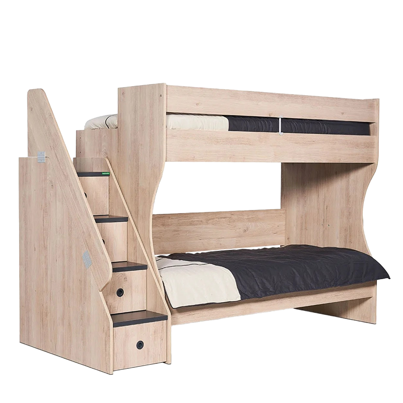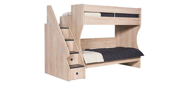 Двуетажното легло Torino с четири практични шкафчета за съхранение е отличен избор за всяка детска стая, осигурявайки функционалност и ред. Стълбата може да се монтира отляво или отдясно, а използваните материали гарантират здравина и безопасност. Стилният му дизайн се вписва лесно в разнообразни интериори. Подробности за размерите и характеристиките можете да намерите в раздел "Техническа информация".