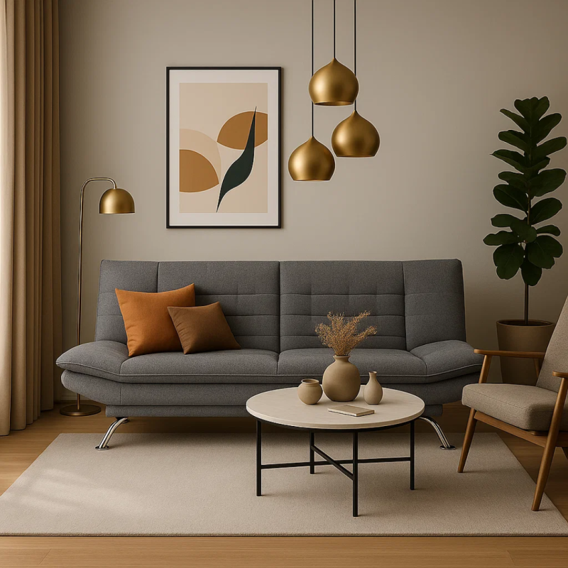 Разтегателен клик-клак диван AMELIA – сив съчетава модерен външен вид с практичност за всеки дом. Благодарение на лесния клик-клак механизъм, диванът бързо се превръща в удобно легло – идеално решение за гости или малки пространства. Седалката и облегалката са с мека тапицерия и пълнеж от висококачествен пенополиуретан за комфорт през целия ден. Декоративните възглавници допълват визията и предлагат допълнителна опора. Пълна информация за размерите и характеристиките на модела ще намерите в таблицата в таб/поле "Техническа информация".