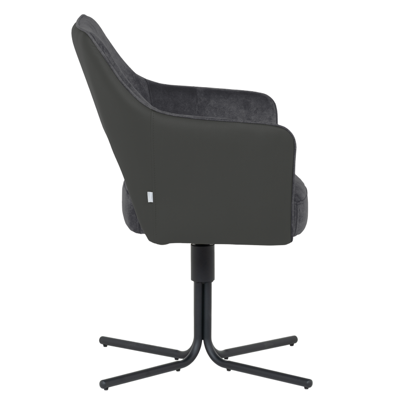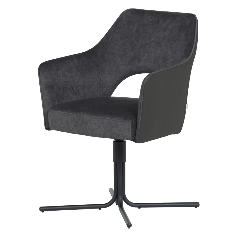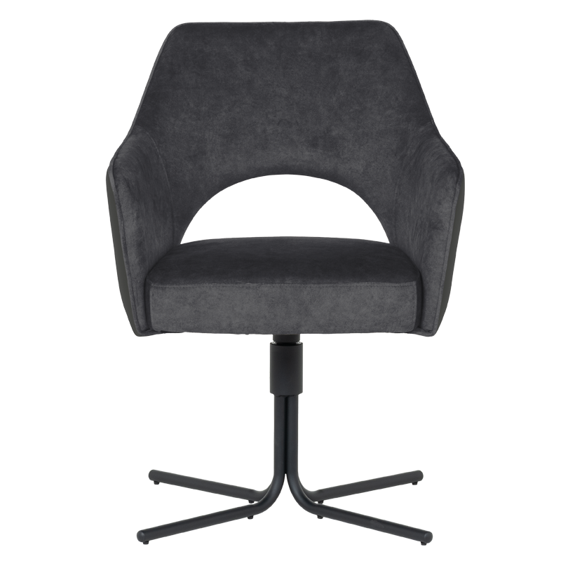 Трапезният стол PARNU съчетава елегантен модерен дизайн с отлична функционалност. Меката седалка е тапицирана с висококачествена дамаска и разполага с покет пружини за допълнителен комфорт, а извитите подлакътници допринасят за усещането за уют и подкрепа. Столът е снабден с механизъм за плавно завъртане на 360°, което улеснява движението и комуникацията около масата. Металната кръстата основа осигурява стабилност и издръжливост до 120 кг. PARNU е стилно решение за всяка съвременна трапезария, комбиниращо комфорт, практичност и изчистена визия. Пълна информация за размерите и характеристиките на модела ще намерите в таблицата в таб/поле 'Техническа информация'.