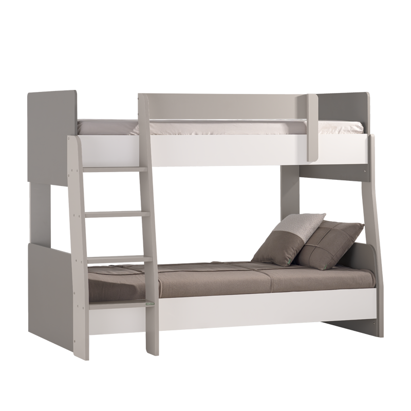 Двуетажното детско легло RIGA е интелигентно решение за помещения, които се споделят от две деца или често посрещат гости. Моделът се отличава със здрава конструкция, изработена от ламинирано ПДЧ с високо качество, и съчетава надеждност с съвременна визия. Стълбата е проектирана за сигурно и удобно изкачване, а предпазните бордове на горното ниво осигуряват спокойствие за родителите и безопасен сън за децата. Леглото пести място, без да прави компромис с уюта – идеален избор за модерни и добре организирани детски стаи. Пълна информация за размерите и характеристиките на модела ще намерите в таблицата в таб/поле "Техническа информация".