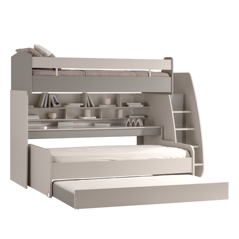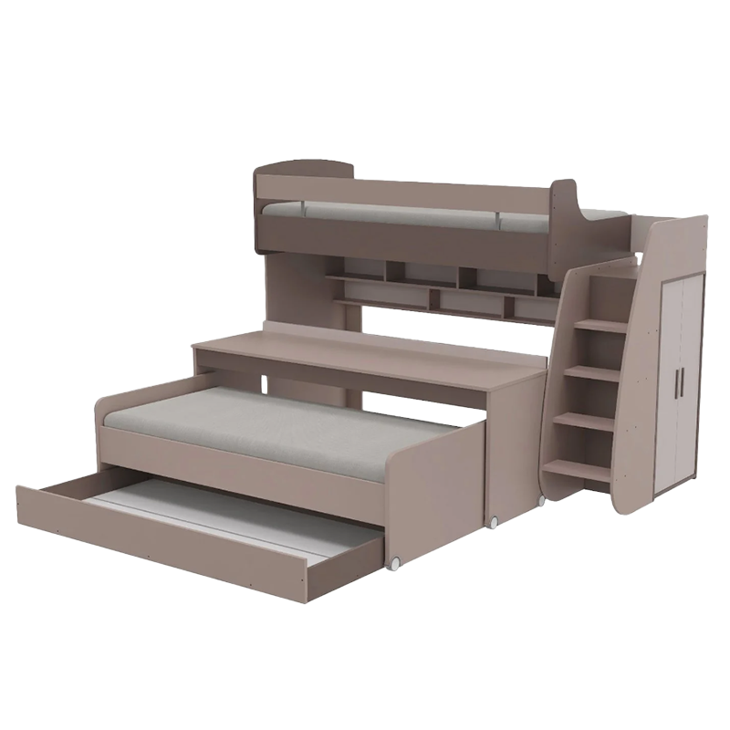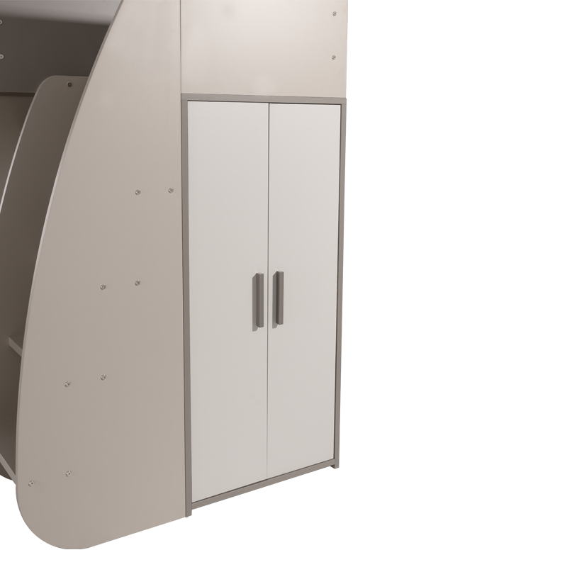 Детското легло RIGA с размери 90x200 см е практично и стилно решение за модерната детска стая. Изработено от устойчиво ламинирано ПДЧ с дебелина 18 мм, то съчетава здравина с функционален дизайн. Моделът включва подматрачна рамка, етажерка и две вградени шкафчета, които осигуряват удобно място за съхранение на книги, играчки и лични вещи. Вградената стълба и предпазната преграда допринасят за безопасността и комфорта на детето по време на ежедневна употреба. Пълна информация за размерите и характеристиките на модела ще намерите в таблицата в таб/поле "Техническа информация".