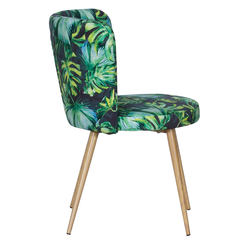 Трапезният стол Carmen 525 е модел с модерен дизайн, който ще внесе стил и екзотика в интериора. Изработен е от висококачествена дамаска с цветни мотиви и метални крака, наподобяващи дърво. Пълна информация за размерите и характеристиките на модела ще намерите в таблицата в таб/поле "Техническа информация".