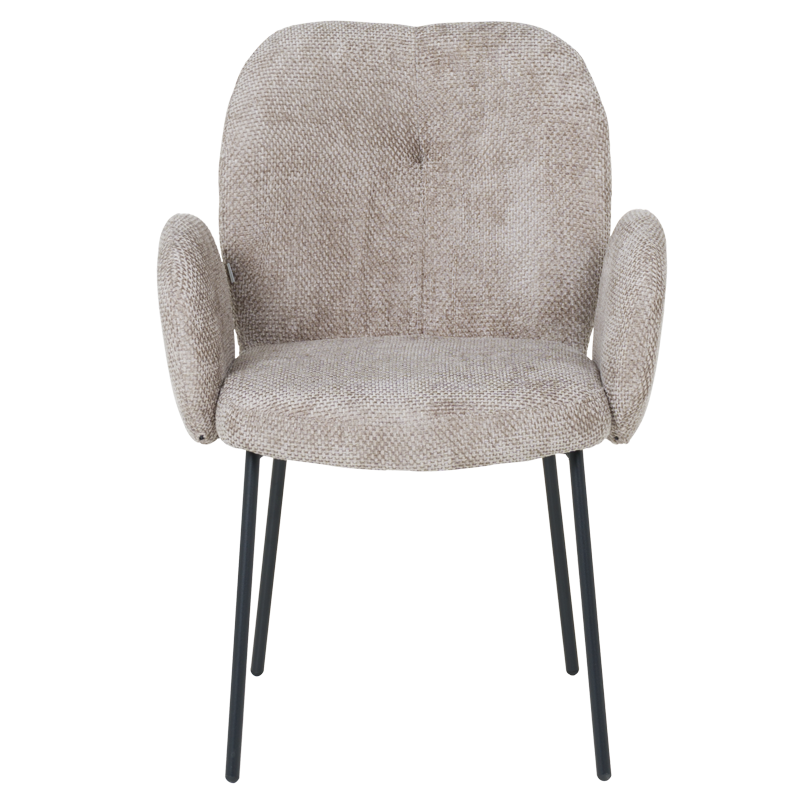 Трапезният стол OLIVER впечатлява с елегантна визия и комфорт. Облечен във висококачествена дамаска с едра текстура, той се откроява с подлакътници в интересна полукръгла форма, които придават стил и изисканост. Здравите крака от праховобоядисан метал осигуряват стабилност и устойчивост. OLIVER е съвременно решение за трапезарии с характер. Пълна информация за размерите и характеристиките на модела ще намерите в таблицата в таб/поле 'Техническа информация'.