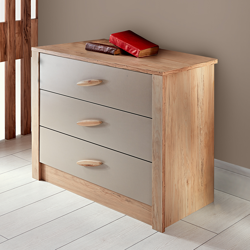 Скринът MY HOUSE с 3 чекмеджета е стилно и практично допълнение към обзавеждането в детската или младежка стая. Съчетава модерна визия в естествени тонове с функционалност, подходяща за ежедневно ползване. Моделът е изработен от висококачествени материали. Чекмеджетата са конструирани от 18 и 8 мм ПДЧ и издържат натоварване до 25 кг. Благодарение на механизма с плавно затваряне, те се отварят и затварят безшумно и сигурно. Пълна информация за размерите и характеристиките на модела ще намерите в таблицата в таб/поле 'Техническа информация'.