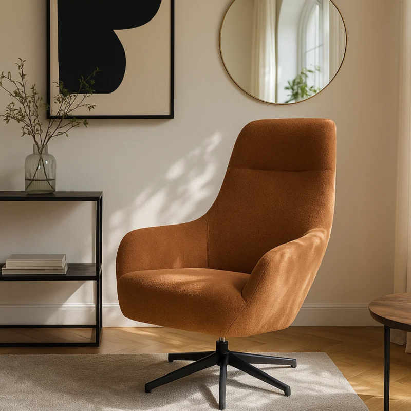 Кресло DANI впечатлява с изчистена форма, мека дамаска и приятна на допир текстура. Конструкцията е стабилна, с прахово боядисани метални крака, а удобната седалка прегръща тялото с приятно усещане за мекота. Въртящата основа с 360° обхват и функцията за люлеене допринасят за максимален релакс. Подходящо е както за модерни, така и за по-класически интериори. Пълна информация за размерите и характеристиките на модела ще намерите в таблицата в таб/поле 'Техническа информация'.