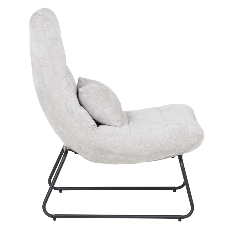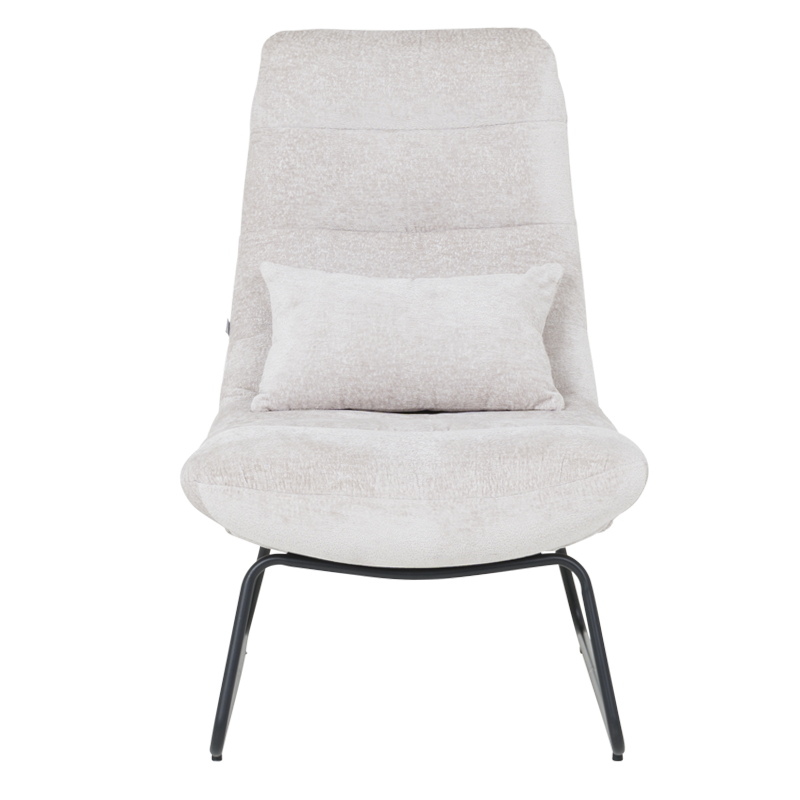 Кресло IRMA впечатлява с модерна визия и изключително комфортна седалка, съчетана с метална основа в елегантен черен цвят. Меката дамаска в бежов тон създава усещане за уют, а включената декоративна възглавничка добавя допълнителна опора и стил. Перфектно допълнение към съвременния интериор, подходящо за всекидневна, кът за четене или спалня. Пълна информация за размерите и характеристиките на модела ще намерите в таблицата в таб/поле "Техническа информация".