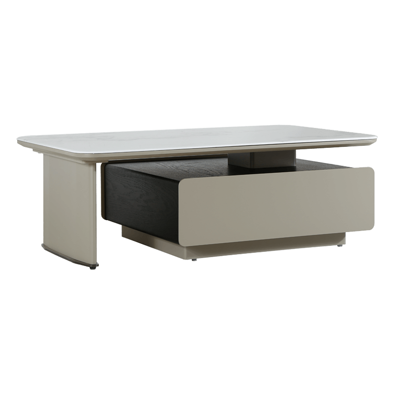 Холната маса ALIVIA впечатлява със своя изчистен силует и стилна комбинация от керамика и МДФ. Плотът с дебелина 33 мм съчетава естествена здравина и визуален лукс, а меко заоблените ръбове и контрастното двуцветно тяло в бяло и капучино добавят модерна нотка към всяко интериорно пространство. Разполага с две чекмеджета с корпус от борова дървесина, които осигуряват дискретно място за съхранение и поддържат реда около дивана. Независимо дали използвате ALIVIA като централна точка в дневната или като допълнение към вече съществуващо обзавеждане, тя гарантира елегантност, стил и комфорт във всеки детайл. Пълна информация за размерите и характеристиките на модела ще намерите в таблицата в таб/поле „Техническа информация“.