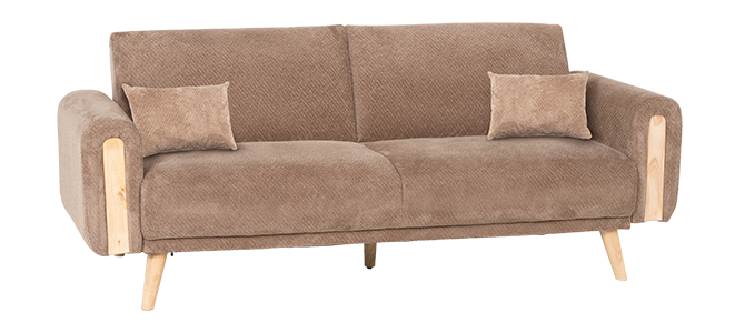 Диван GOMA впечатлява със своя балансиран дизайн, който съчетава модерна линия с топлината на естествените материали. Дървените крака и декоративните елементи в подлакътниците внасят усещане за уют и домашна хармония, превръщайки го в естествен акцент в интериора. Конструкцията от дърво и метал гарантира стабилност и дълготрайност, а висококачествената дамаска, съчетана с пълнеж от пенополиуретан и покет пружини, осигурява изключителен комфорт при седене и сън. Механизмът за разтягане тип клик‑клак трансформира дивана в удобно легло с площ 113 × 179 см. Включени са две декоративни възглавници с калъфи с цип за лесно сваляне и поддръжка. Пълна информация за размерите и характеристиките на модела ще намерите в таб “Техническа информация”.