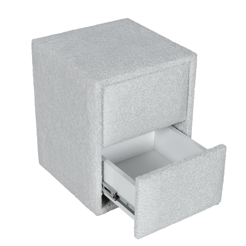 CANCUN е модерно нощно шкафче, което впечатлява със своята изчистена визия и практичен дизайн. Изработено от 18 мм ламинирано ПДЧ и тапицирано с висококачествена дамаска, моделът съчетава визуален комфорт и усещане за уют. Разполага с две чекмеджета с механизъм Push up, които се отварят с лек натиск, осигурявайки лесен достъп и минималистична визия без дръжки. Перфектен избор за модерни спални, в които стилът върви ръка за ръка с функционалността. Пълна информация за размерите и характеристиките на модела можете да намерите в таблицата в раздел „Техническа информация“.