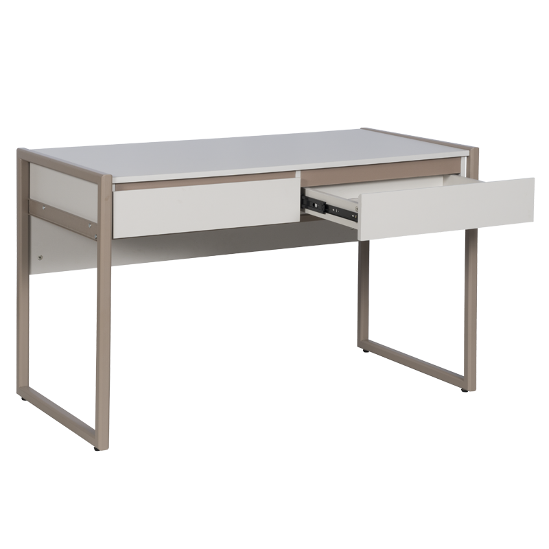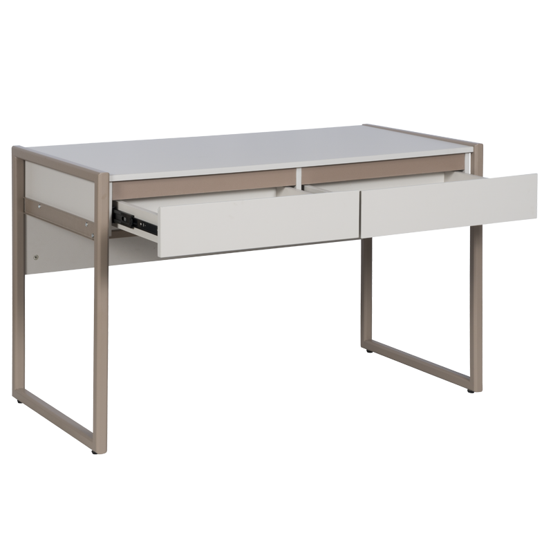 Бюро SUBIC съчетава елегантен дизайн и практичност. Изработено е от ПДЧ с меламиново покритие и метална конструкция с прахово боядисани крака, което осигурява стабилност и дълготрайност. Разполага с две чекмеджета за съхранение на документи и офис принадлежности, а изчистените линии го правят подходящо както за домашен офис, така и за работна среда. Пълна информация за размерите и характеристиките на модела ще намерите в таблицата в таб/поле 'Техническа информация'.