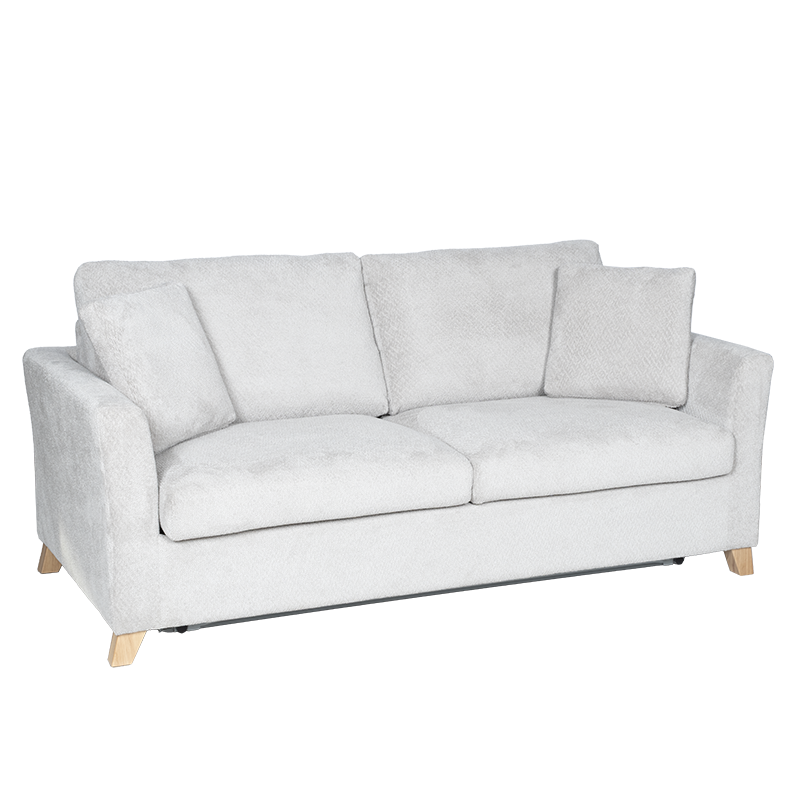 Разтегателен диван-тройка FIZI е създаден за любителите на комфорта и изчистения стил. Моделът предлага удобна седалищна част с пълнеж от полиуретан и покет пружини, които осигуряват отлична опора и мекота. Конструкцията е изработена от дърво и метал за стабилност и дълъг живот, а тапицерията от висококачествена дамаска придава уютен и елегантен вид. Диванът разполага с функция сън, която се разгъва лесно и създава комфортна площ за почивка. Дървените крака добавят топлина към дизайна, а две декоративни възглавници допълват усещането за стил и завършеност. Пълна информация за размерите и характеристиките на модела ще намерите в таблицата в таб/поле 'Техническа информация'.