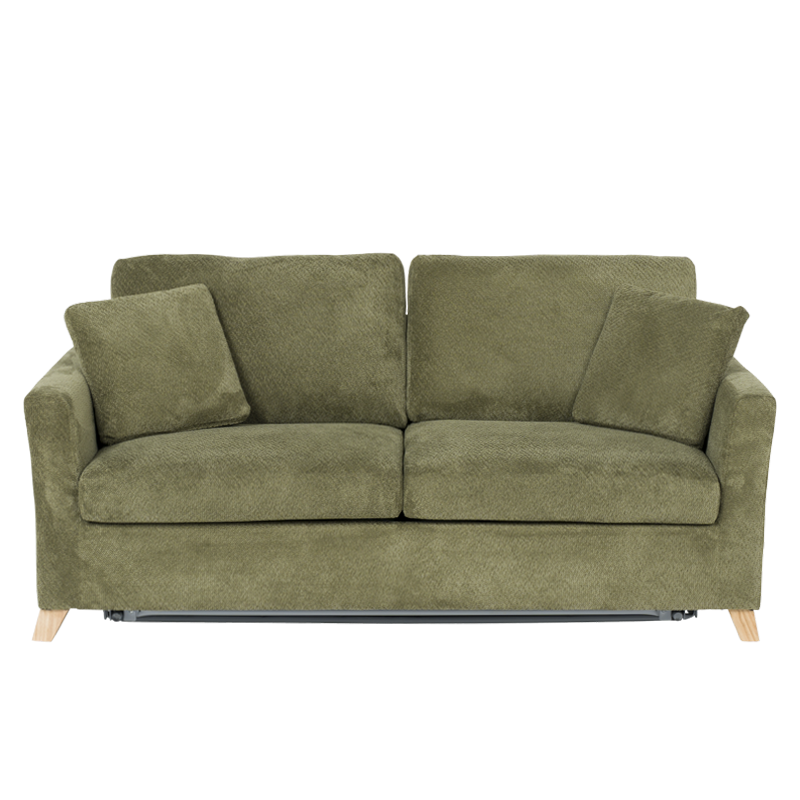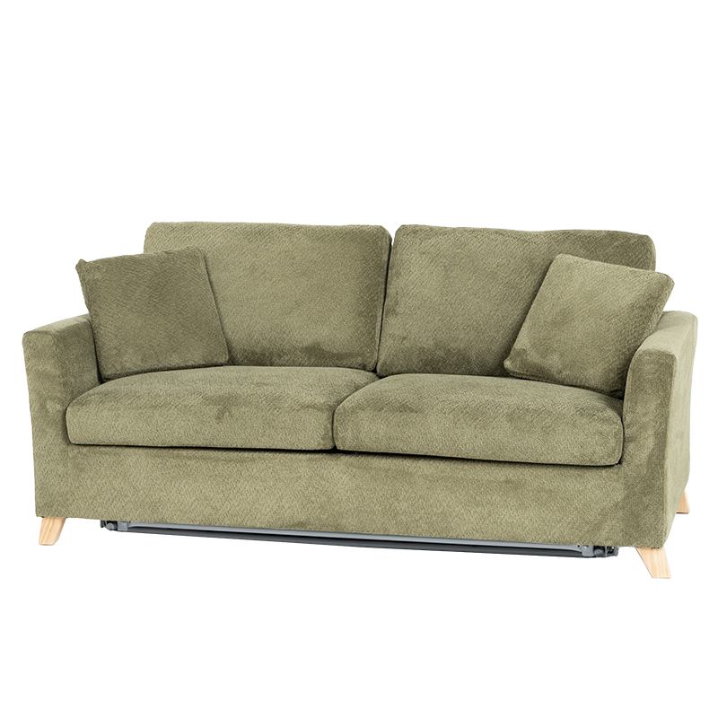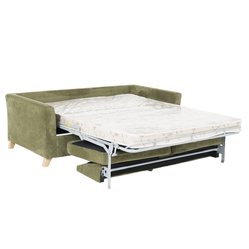 Разтегателен диван-тройка FIZI е създаден за любителите на комфорта и изчистения стил. Моделът предлага удобна седалищна част с пълнеж от полиуретан и покет пружини, които осигуряват отлична опора и мекота. Конструкцията е изработена от дърво и метал за стабилност и дълъг живот, а тапицерията от висококачествена дамаска придава уютен и елегантен вид. Диванът разполага с функция сън, която се разгъва лесно и създава комфортна площ за почивка. Дървените крака добавят топлина към дизайна, а две декоративни възглавници допълват усещането за стил и завършеност. Пълна информация за размерите и характеристиките на модела ще намерите в таблицата в таб/поле 'Техническа информация'.