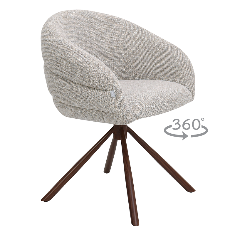Трапезен стол NAMKA привлича вниманието с елегантен силует и мек, обгръщащ дизайн. Тапицерията от висококачествена дамаска и комфортните подлакътници създават усещане за уют при всяко сядане. Моделът разполага със стабилна въртяща се основа от праховобоядисан метал, която съчетава стил и функционалност. Подходящ както за трапезарията, така и за кът за работа или срещи. Пълна информация за размерите и характеристиките на модела ще намерите в таблицата в таб/поле "Техническа информация".