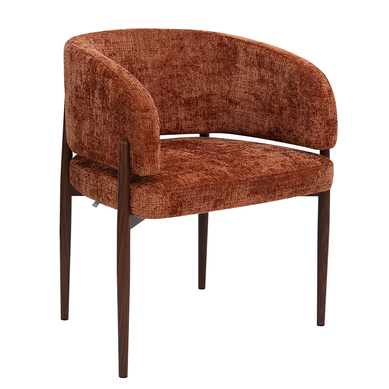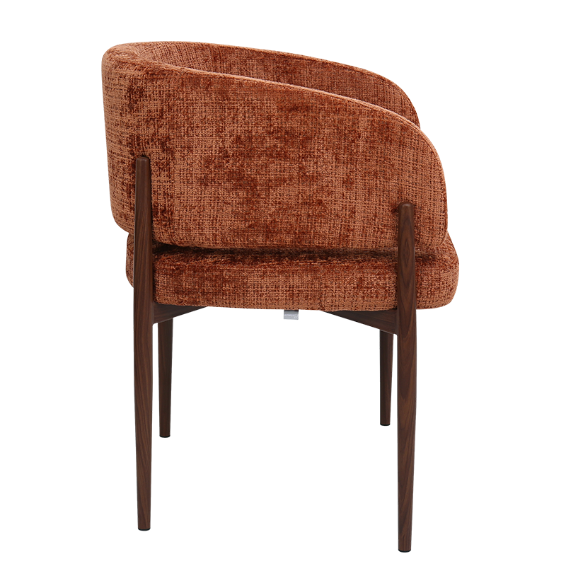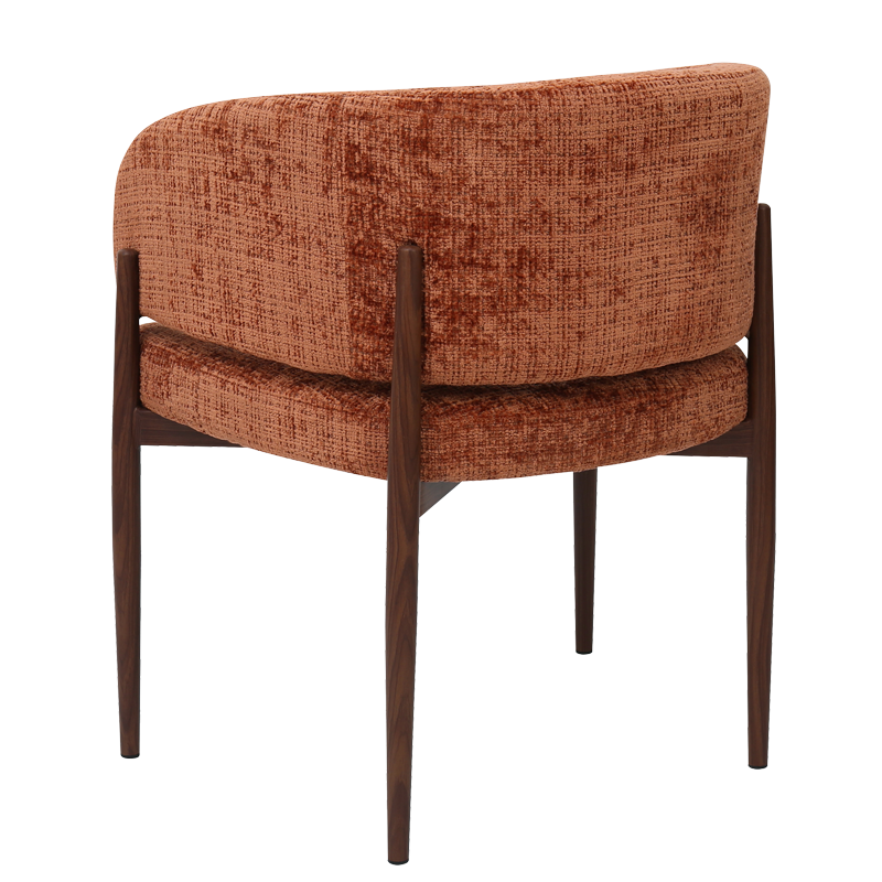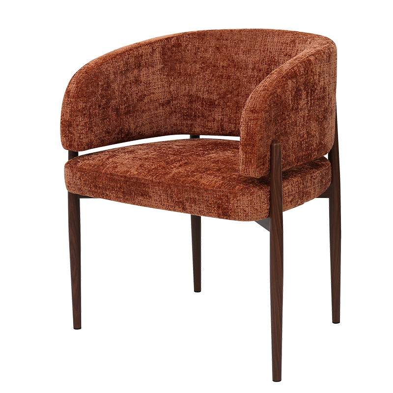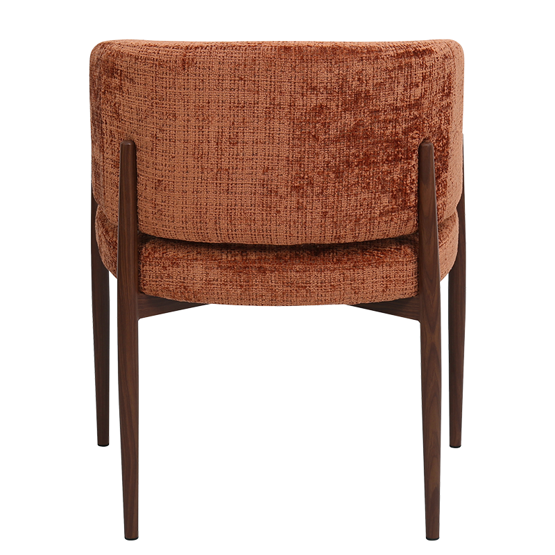Трапезният стол RIMAR съчетава модерна визия с комфорт и прецизна изработка. Тапицираната седалка и облегалка с изчистени извивки осигуряват стабилна опора и приятна мекота при сядане. Издължените метални крака с праховобоядисано покритие в дървесен цвят допълват елегантния силует и придават изискан акцент на интериора. Пълна информация за размерите и характеристиките на модела ще намерите в таблицата в таб/поле "Техническа информация".