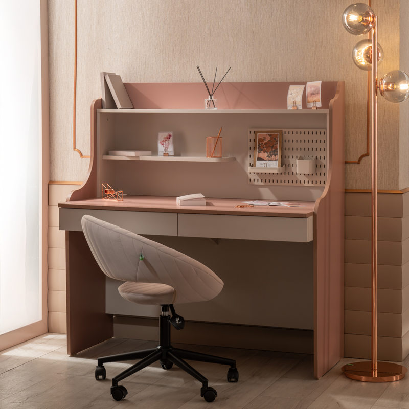 Детското бюро с надстройка ESTELLA предлага интелигентно решение за организиране на учебния процес и творчески занимания. Широкият плот осигурява достатъчно пространство за компютър, книги и учебни материали, а вграденият USB захранващ модул улеснява зареждането на мобилни устройства по време на работа и учение. Надстройката включва практични рафтове за съхранение на книги, тетрадки и декорации, което създава подредена и вдъхновяваща работна среда. В горната част се намира перфорирано метално пано, на което могат да се закачат бележки, снимки и напомняния Пълна информация за размерите и характеристиките на модела ще намерите в таблицата в таб/поле 'Техническа информация'.
