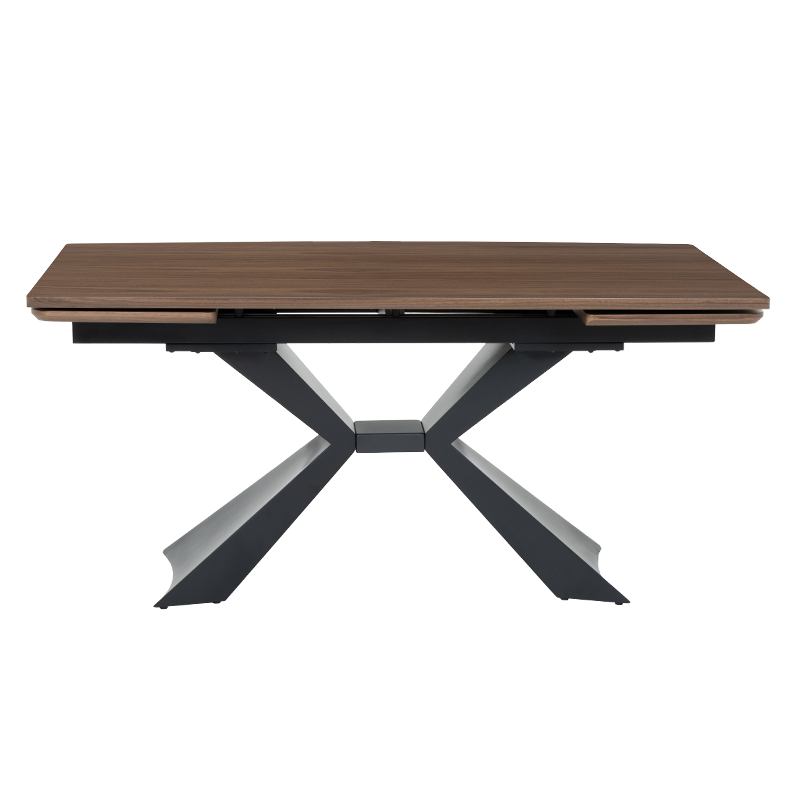 Разтегателна трапезна маса TIGRE впечатлява с балансирано съчетание между топъл дървесен уют и модерен индустриален стил. Плотът е изработен от МДФ с естествен фурнир, с дебелина 25 мм, отличаващ се със здрава и устойчива структура, а праховобоядисаната метална основа осигурява стабилност и визуален контраст.Благодарение на удобния механизъм за разтягане, масата лесно се адаптира към броя на гостите, като съчетава елегантен външен вид с практична функционалност. Топлият орехов цвят добавя изтънченост и хармония към всяко помещение.