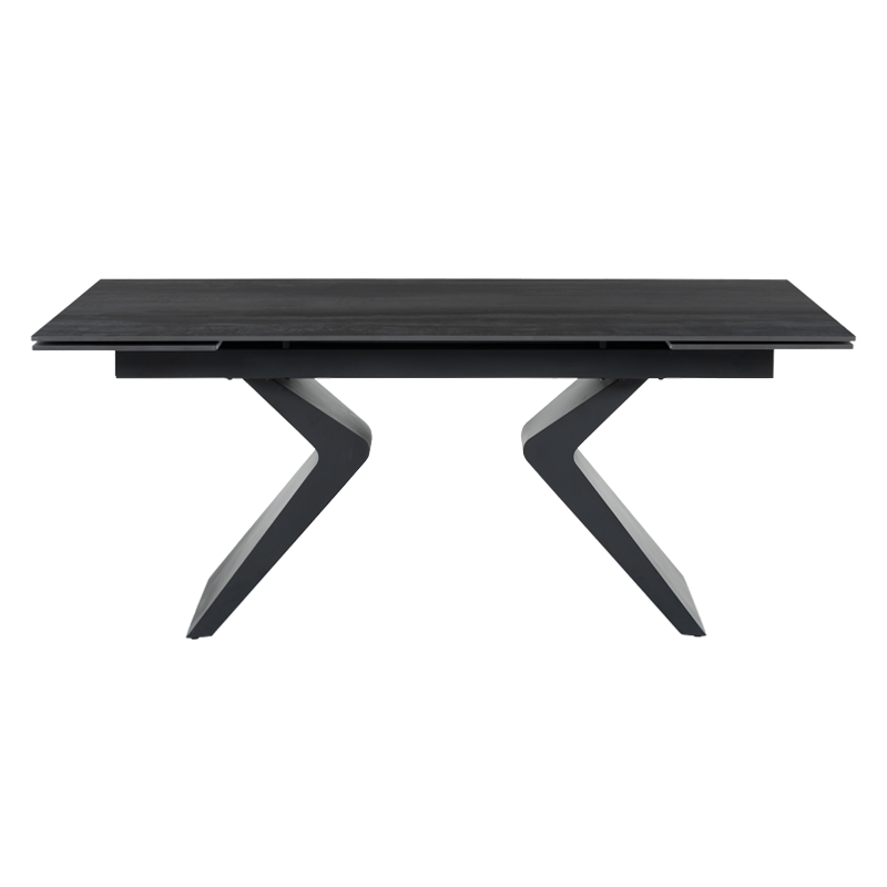 Разтегателна трапезна маса GUAMA впечатлява със своя модерен и изчистен дизайн, който комбинира елегантност и практичност. Плотът е изработен от керамика с дебелина 12 мм, отличаваща се с висока устойчивост на надраскване и лесна поддръжка. Праховобоядисаната метална основа осигурява стабилност и придава съвременен индустриален облик на масата. Благодарение на удобния механизъм за едновременно разтягане от двете страни, моделът лесно увеличава дължината си, когато посрещате повече гости.