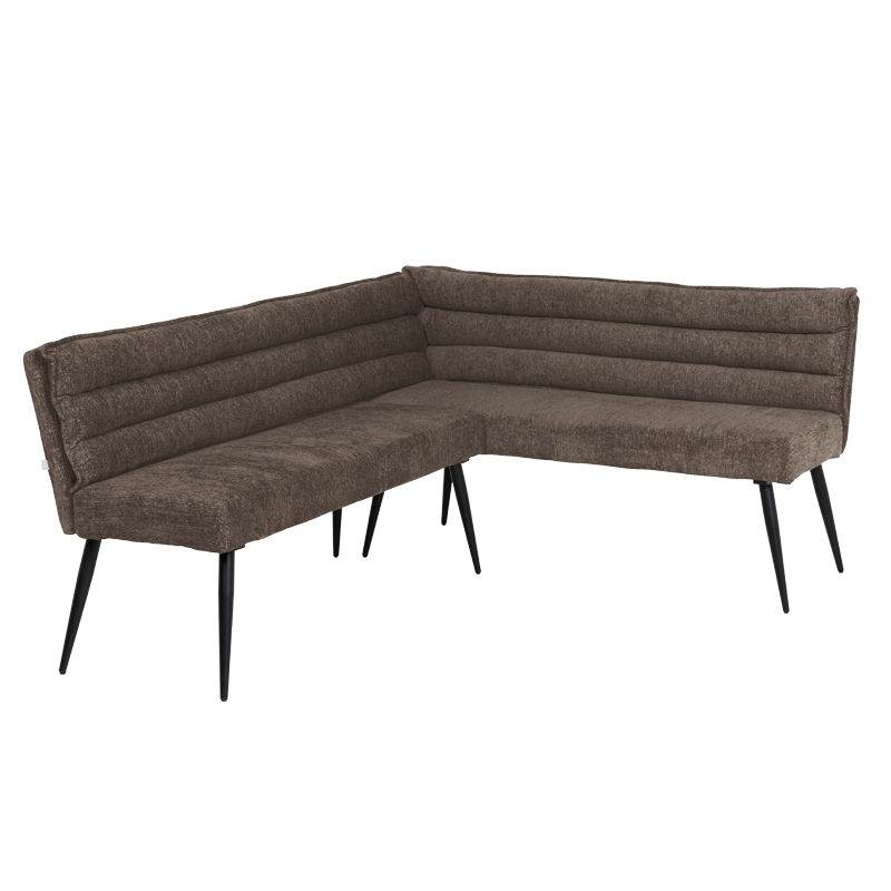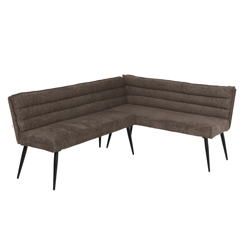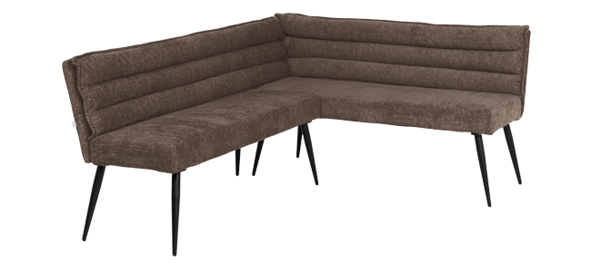 Кухненският ъгъл IKSAN съчетава стил, уют и практичност в едно елегантно решение за трапезарията. Седалката и облегалката са изработени от мека дамаска с пълнеж от полиуретанова пяна и покет пружини, които осигуряват комфорт и стабилна опора при ежедневно ползване. Моделът впечатлява с модерна визия и хоризонтално капитониран дизайн, който допринася за усещане за уют. Здравата основа от праховобоядисан метал в черен цвят гарантира устойчивост и дълготрайност. Пълна информация за размерите и характеристиките на модела ще намерите в таблицата в таб/поле "Техническа информация".