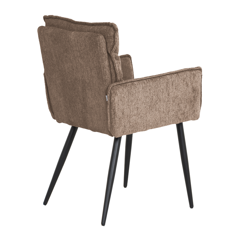 Трапезният стол IKSAN с подлакътници съчетава модерен стил и високо ниво на комфорт. Той е изработен от мека дамаска с пълнеж от полиуретанова пяна, която предлага приятно усещане при седене. Черните праховобоядисани метални крака осигуряват стабилна основа и елегантен завършек – подходящ за всяка модерна трапезария или кухненски кът. Пълна информация за размерите и характеристиките на модела ще намерите в таблицата в таб/поле "Техническа информация".
