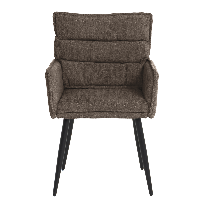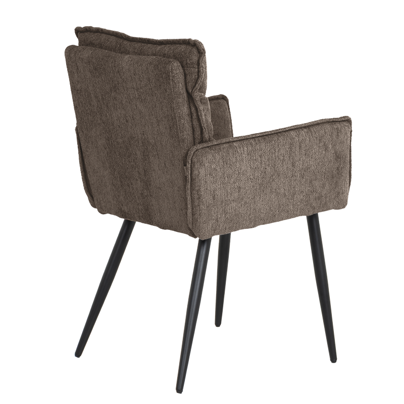 Трапезният стол IKSAN с подлакътници съчетава модерен стил и високо ниво на комфорт. Той е изработен от мека дамаска с пълнеж от полиуретанова пяна, която предлага приятно усещане при седене. Черните праховобоядисани метални крака осигуряват стабилна основа и елегантен завършек – подходящ за всяка модерна трапезария или кухненски кът. Пълна информация за размерите и характеристиките на модела ще намерите в таблицата в таб/поле "Техническа информация".