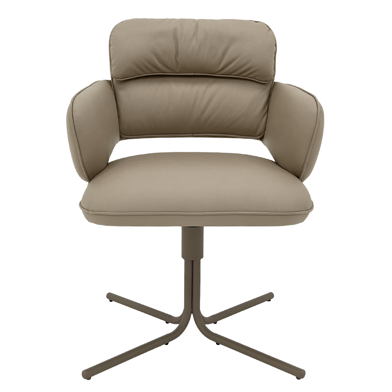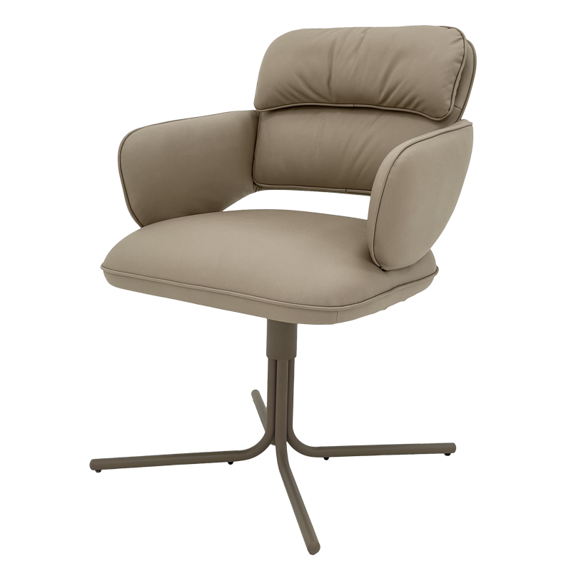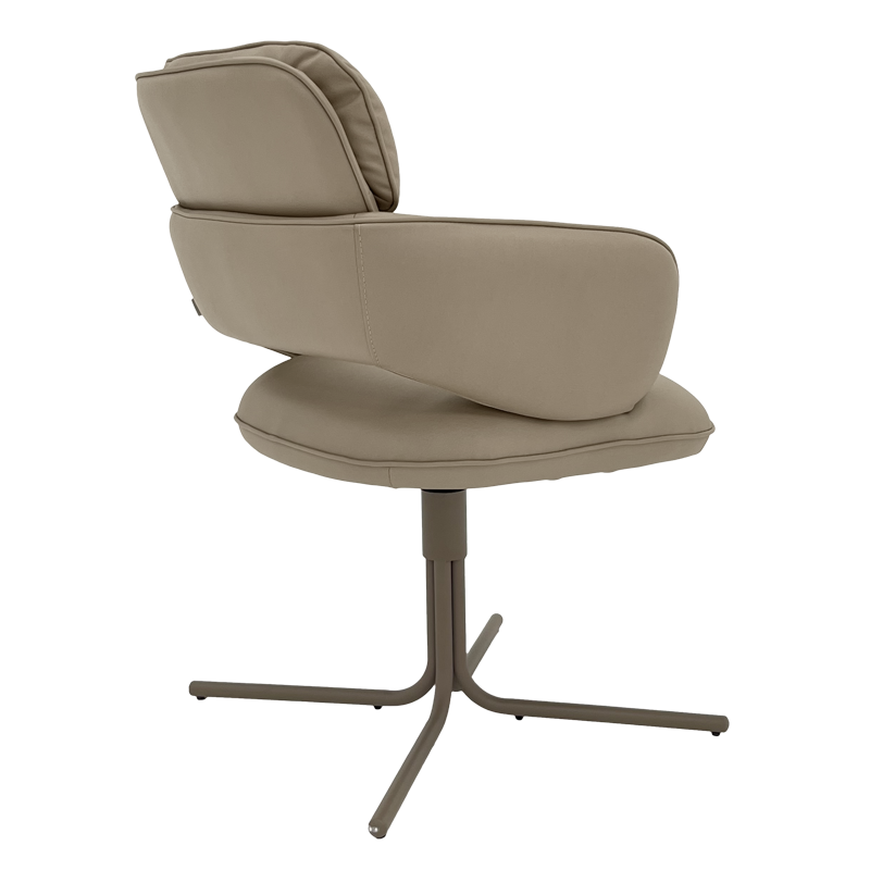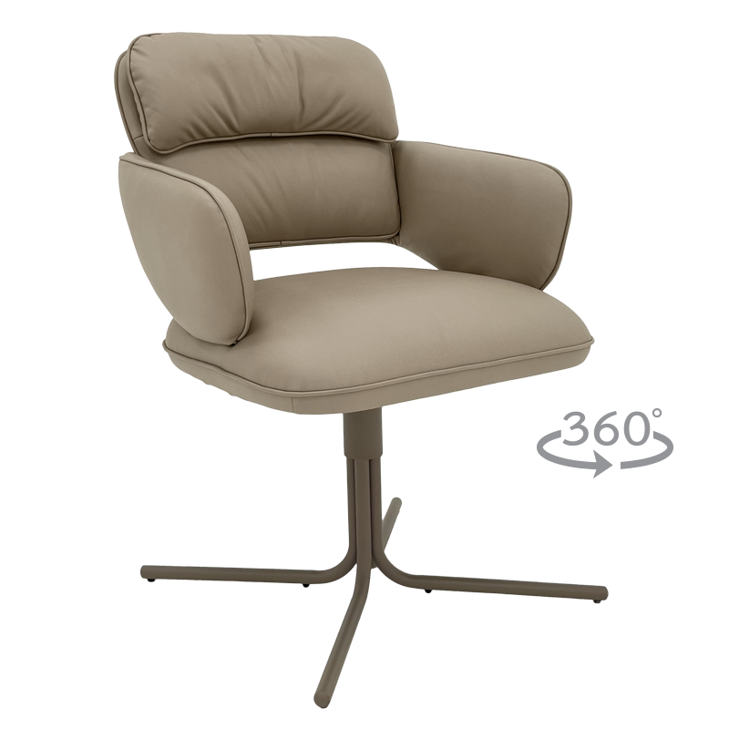 Трапезният стол RAKVERE 5 впечатлява с модерен силует и изтънчен комфорт. Меката дамаска прегръща тялото, а вградените покет пружини осигуряват приятно, пружиниращо усещане при сядане. Люлеещата функция с елегантно автоматично връщане и 360° въртене добавят лекота и свобода на движение. Завършен с фина основа от праховобоядисан метал в бежов мат, моделът носи неподражаемо усещане за стил и съвременна естетика. Пълна информация за размерите и характеристиките на модела ще намерите в таблицата в таб/поле „Техническа информация“.