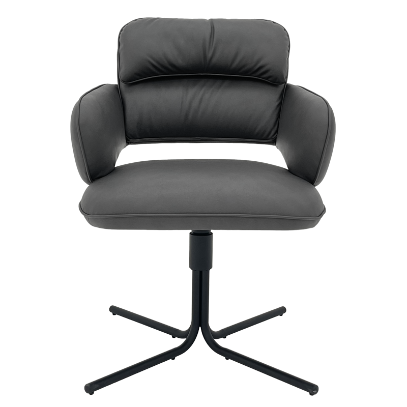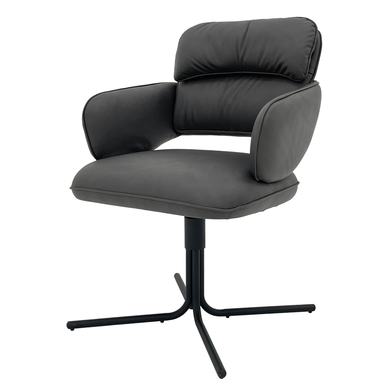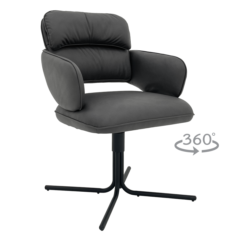 Трапезният стол RAKVERE впечатлява с модерен силует и изтънчен комфорт. Меката дамаска прегръща тялото, а вградените покет пружини осигуряват приятно, пружиниращо усещане при сядане. Люлеещата функция с елегантно автоматично връщане и 360° въртене добавят лекота и свобода на движение. Завършен с фина основа от праховобоядисан метал в черен мат, моделът носи неподражаемо усещане за стил и съвременна естетика. Пълна информация за размерите и характеристиките на модела ще намерите в таблицата в таб/поле „Техническа информация“.