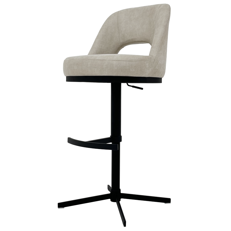 Бар стол KUNDA впечатлява с изискан силует и комфорт, създаден да превърне всяко сядане в приятно изживяване. Седалката с покет пружини и меката дамаска обгръщат тялото с деликатна подкрепа, а праховобоядисаната метална основа добавя стабилност и модерно усещане. Функциите за 360° въртене и регулиране на височината осигуряват индивидуален комфорт, допълнени от елегантна поставка за крака. Прекрасен акцент за стилни кухни, бар плотове и дизайнерски интериори. Пълна информация за размерите и характеристиките на модела ще намерите в таблицата в таб/поле 'Техническа информация'.