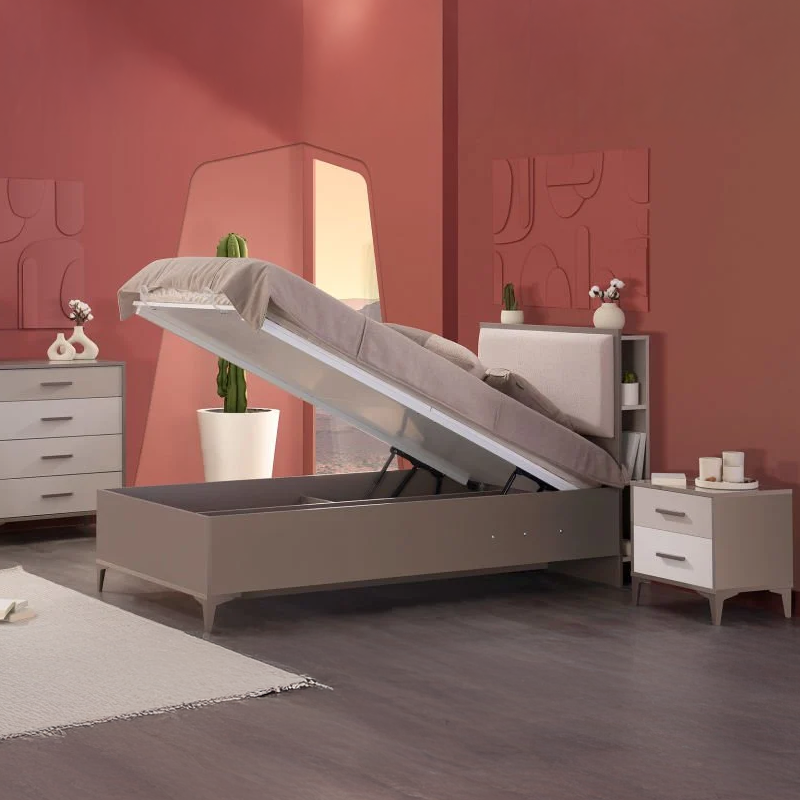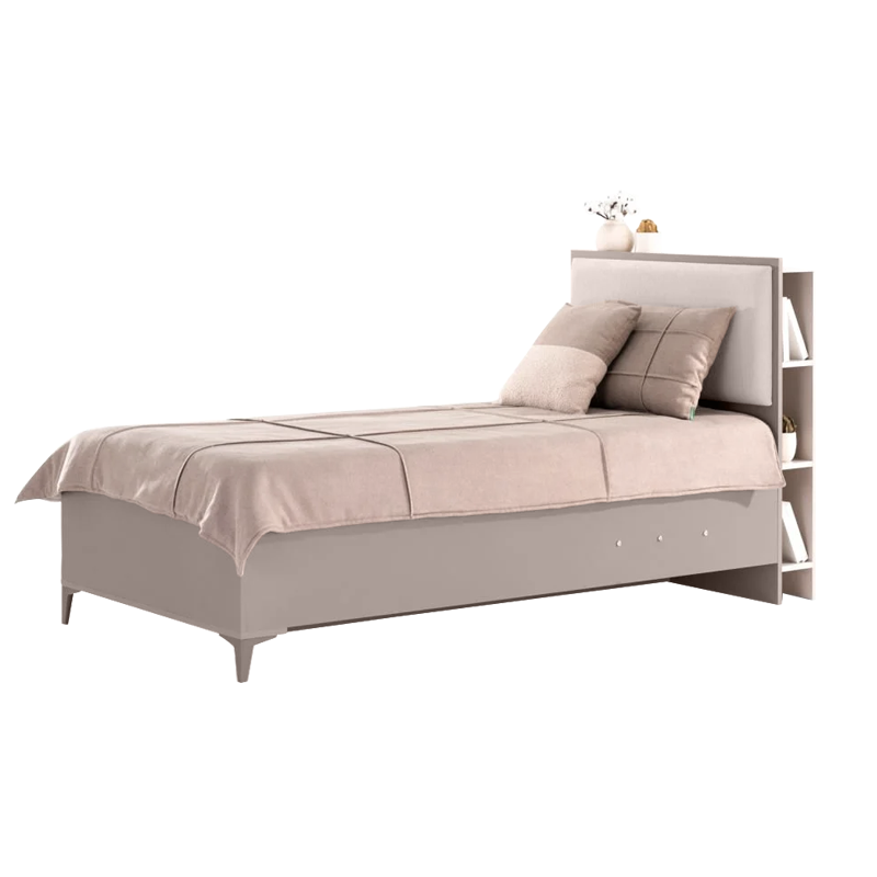 Детско легло RIGA предлага изключителна функционалност благодарение на своята тапицирана табла с практични ниши и просторна ракла за съхранение. Разделеното на отделения подматрачно пространство позволява лесна организация на вещите, а автоматичният предпазен механизъм на амортисьорите гарантира пълна безопасност при ползване. Високите крачета осигуряват лесен достъп за почистване под леглото, а здравата конструкция обещава стабилност и дълготраен комфорт. Пълна информация за размерите и характеристиките на модела ще намерите в таблицата в таб/поле "Техническа информация".