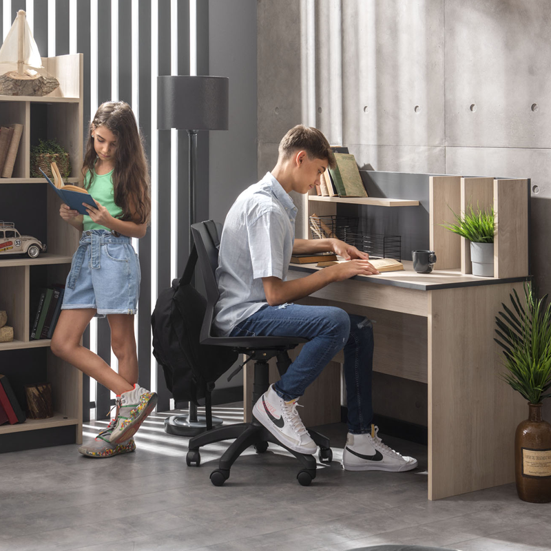 Надстройката TORINO е идеалното допълнение към работното място, което помага за лесното организиране на учебните помагала и личните вещи. Дизайнът включва практичен хоризонтален рафт и вертикални отделения, които са удобни за подреждане на книги, тетрадки и декоративни аксесоари. Пълна информация за размерите и характеристиките на модела ще намерите в таблицата в таб/поле "Техническа информация".