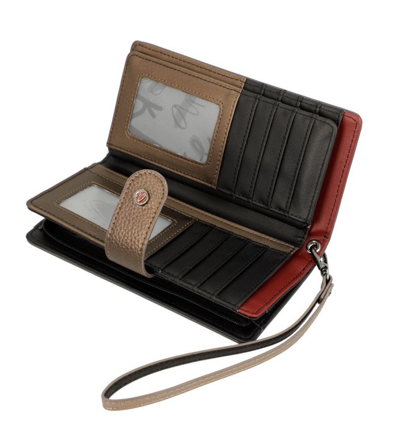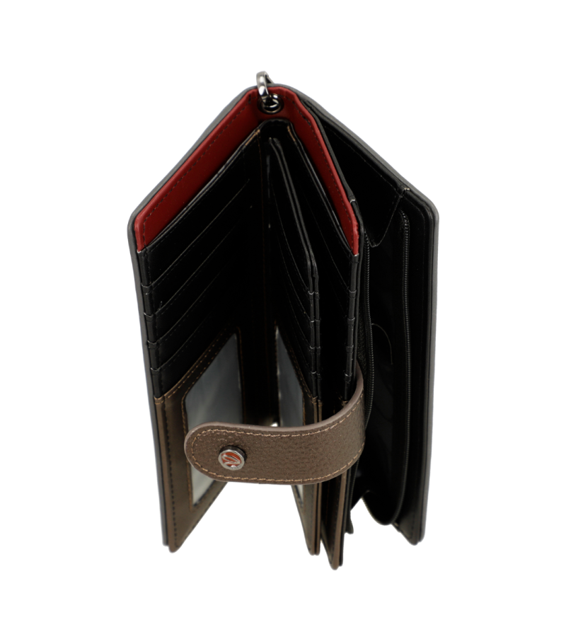 Вид:Висококачествена еко кожа Вид на затваряне: С цип и тик-так Джобове: джоб с цип - място за монети, тик-так отваряне - място за банкноти и лични документи Тип дръжка: Каишка за ръка Размери: 18x10x3 cm Вътрешен състав: 100% ПОЛИЕСТЕР