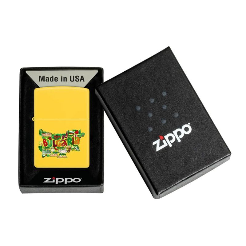 Тази запалка Zippo улавя жизнения дух на България с ярък и позитивен дизайн, създаден специално за българския пазар. Ослепителното жълто покритие носи слънчево настроение, а цветният печат с картата на България превръща модела в отличителен символ на принадлежност и национална идентичност.
