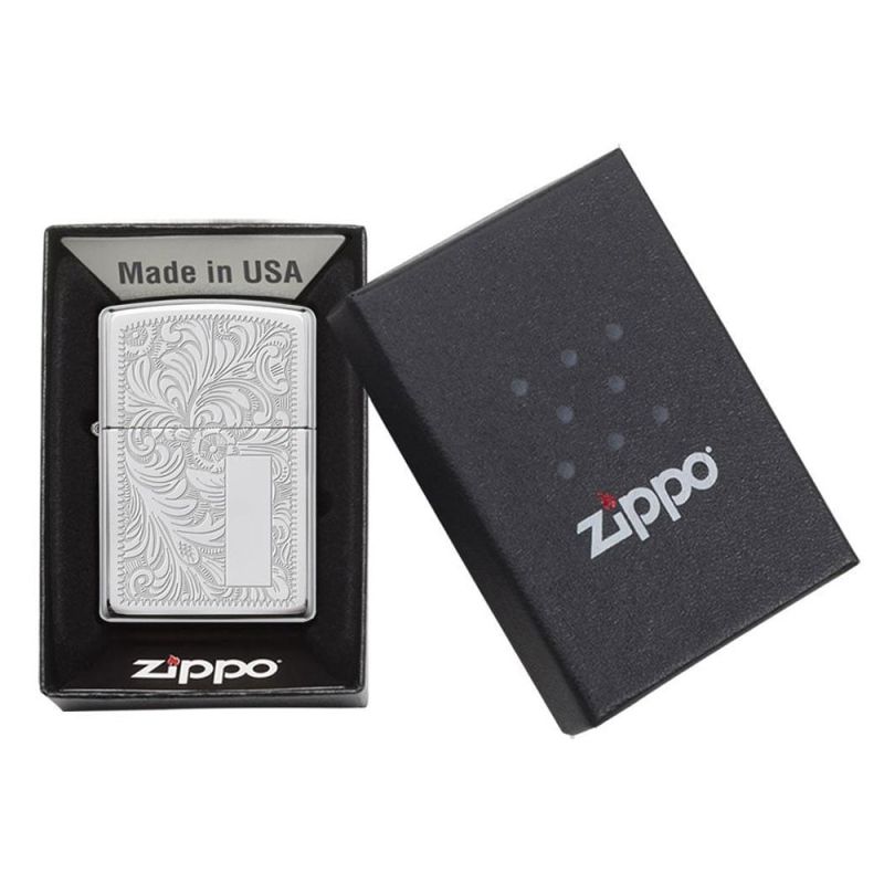Представен през 1974 г, емблематичният флорален модел Venetian® се утвърждава като един от най-разпознаваемите и предпочитани дизайни, които Zippo някога е създавала. Тази впечатляваща запалка с покритие High Polish Chrome съчетава класическа елегантност и богата орнаментика, които я правят неподвластна на времето.