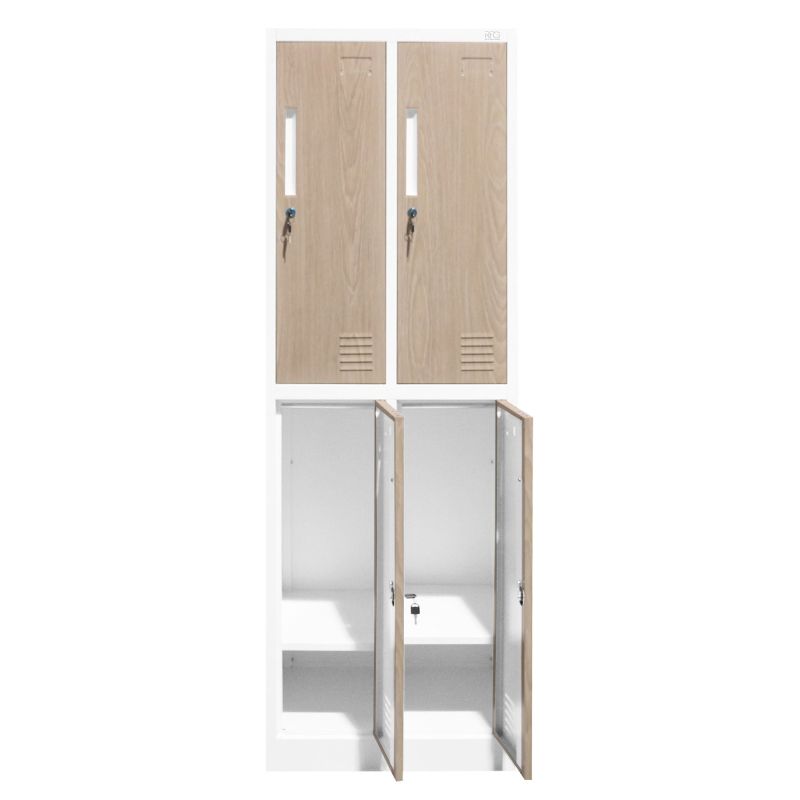 Гардероб RFG, двоен, метален, 900 х 450 х 1850 mm, кехлибарен дъб и бяло