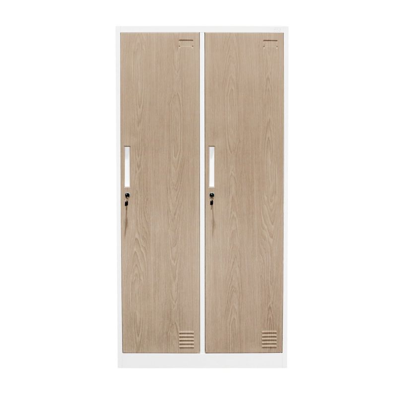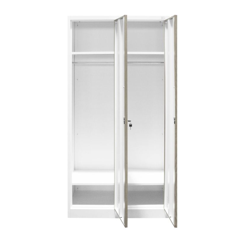 Гардероб RFG, двоен, метален, с 4 врати, 600 х 450 х 1850 mm, кехлибарен дъб и бяло