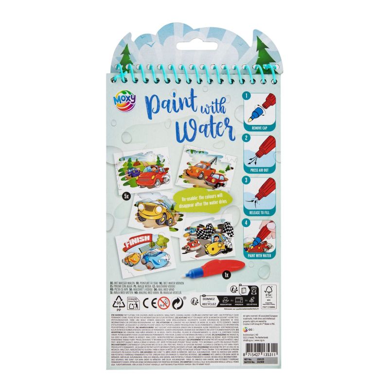Moxy Комплект за рисуване с вода Коли, с включена химикалка