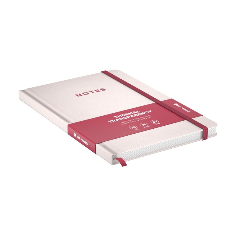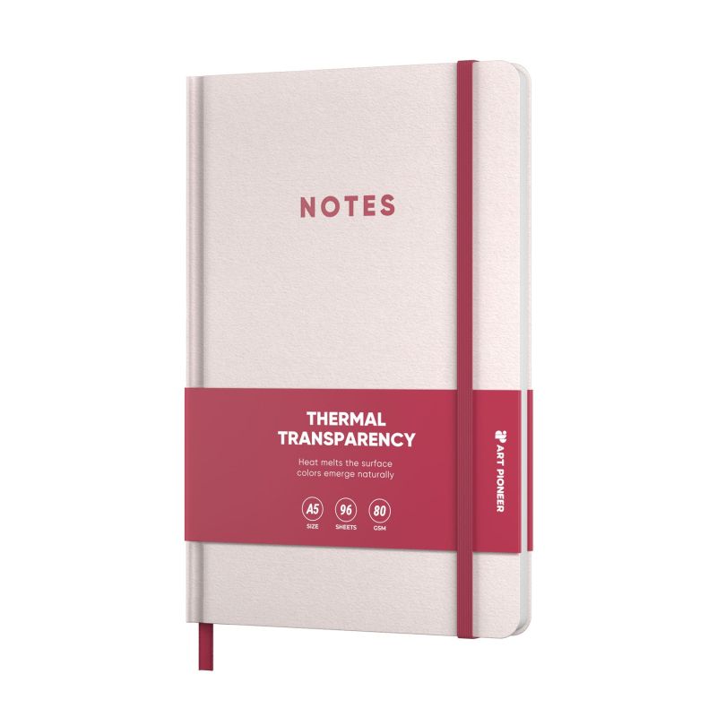 • Бележникът е стилно и функционално решение за ежедневни записки, идеи и планиране. Отличава се с минималистичен дизайн и иновативна корица с термоактивен ефект, която реагира на топлина – при допир или промяна в температурата, повърхността променя своята визия, създавайки фин и елегантен визуален акцент.