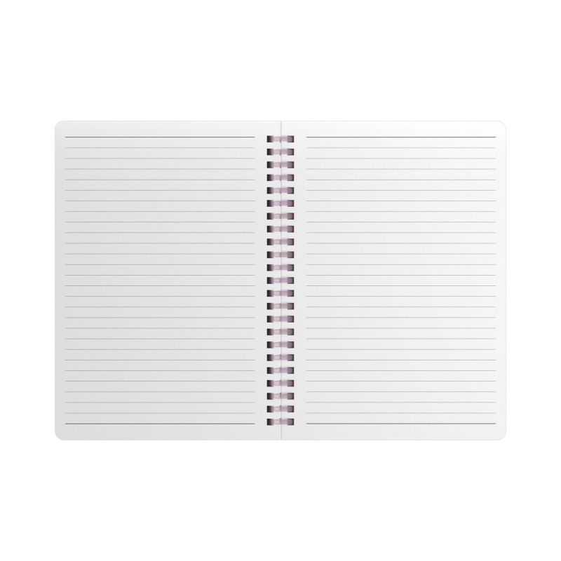 • Форматът A5 я прави компактна и лесна за носене, а спиралното подвързване позволява пълно разтваряне и комфорт при писане от двете страни на листовете.