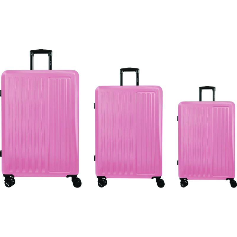 Съдържа 3 броя твърди куфара Spinner издръжлив ABS материал, най - малкият размер е съвместим с ръчен багаж. Многопосочни колела за лесно маневриране, вътрешна телескопична дръжка с бутон за затваряне, локер. Размери: S: 34 х 23 х 55 см, 43 литра; M: 44 х 26.5 х 65 см, 76 литра; L: 50 х 29 х 75 см, 108 литра.