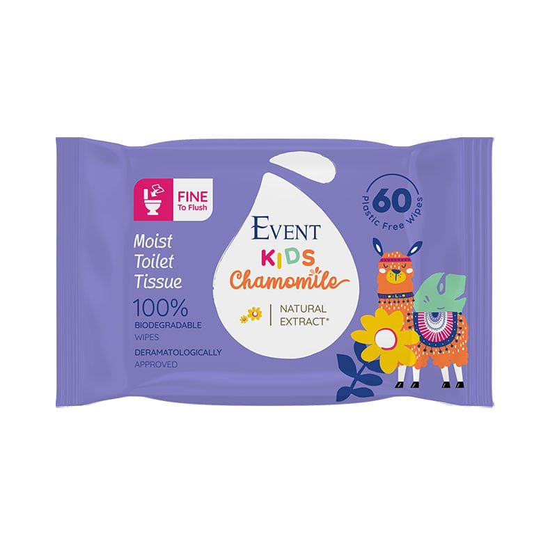 Тоалетна хартия Event, влажна, за деца, с лайка, 60 къса